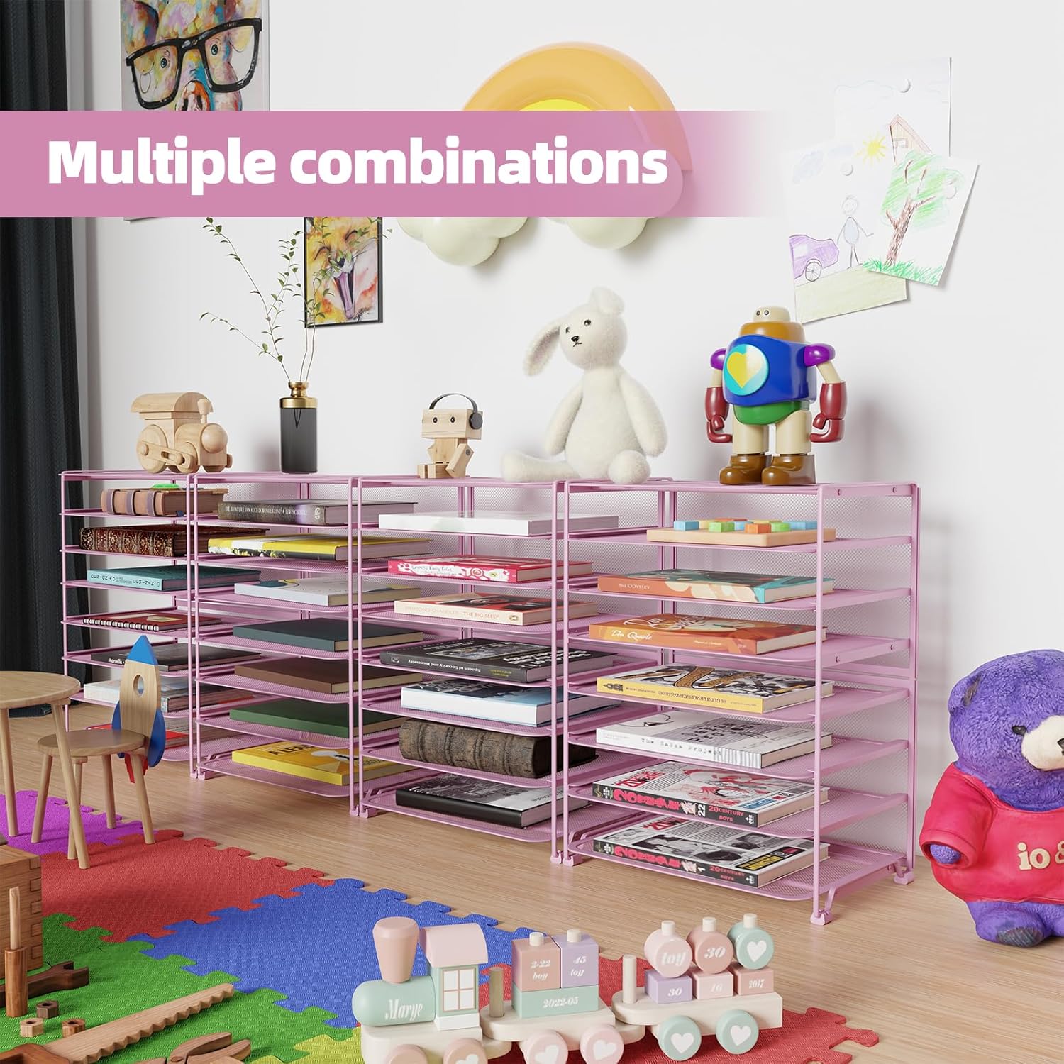 Simple Trending 2 Pack 8 Tier Letter Tray Paper - Mesh Desk File Organizer for Office School Desktop, Pink