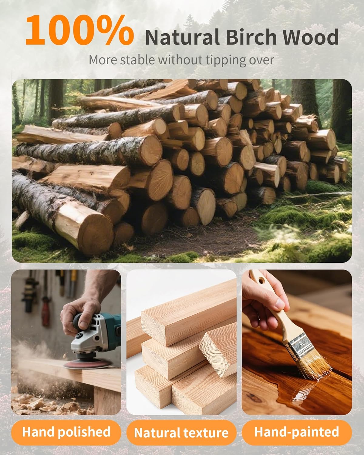 - THICKENED SOLID WOOD MAIN POLE: The coat rack stand main pole is made of 100% natural birch, with a diameter upgraded to 3.54 inches. The thickened and thickened design ensures that the structure is solid and does not shake. The wood coat tree stand can bear up to 180 pounds and can hang heavy coats and down jackets for a long time without deformation. The coat hanger stand durability is far superior to ordinary board coat racks, providing a reliable storage solution for modern families