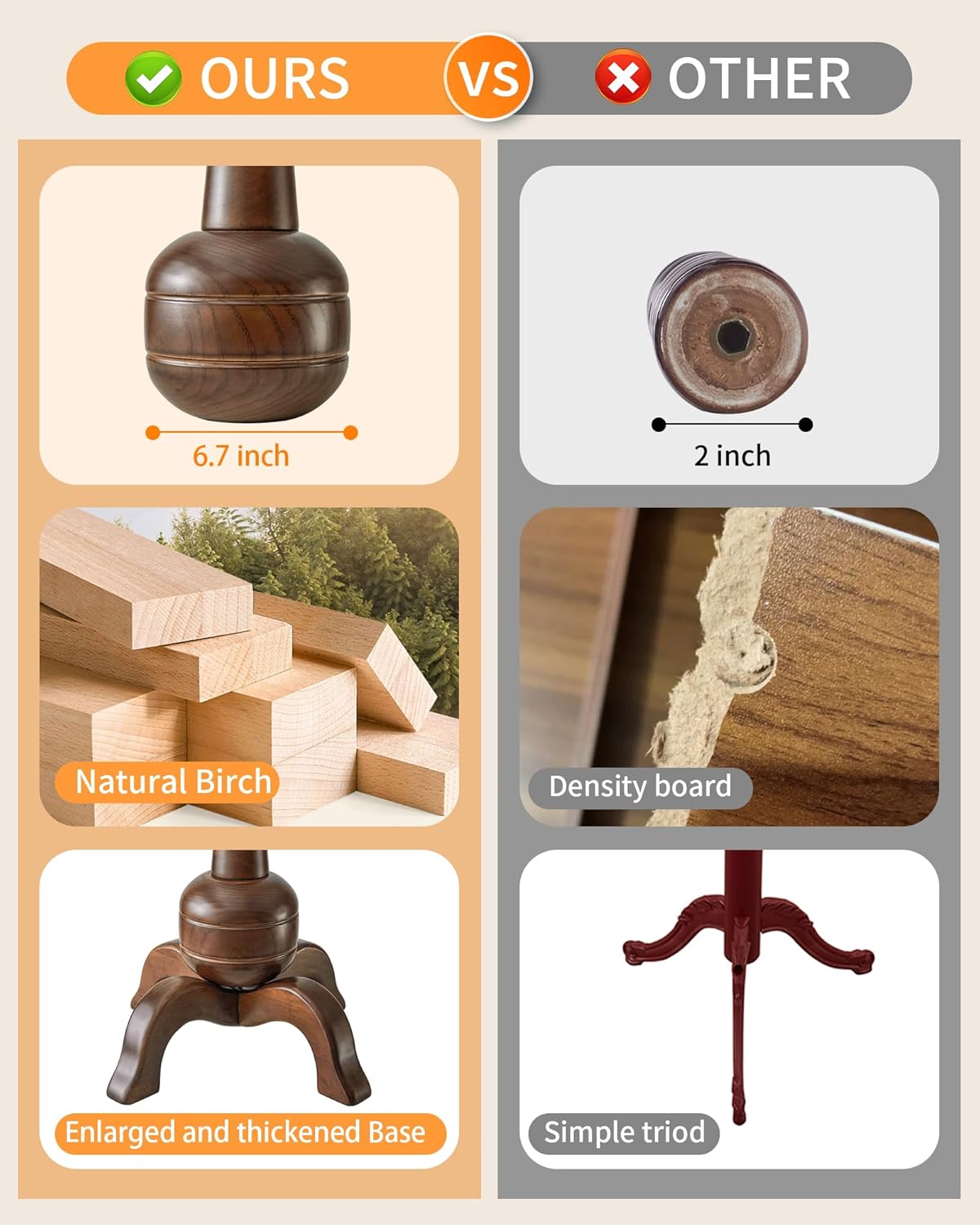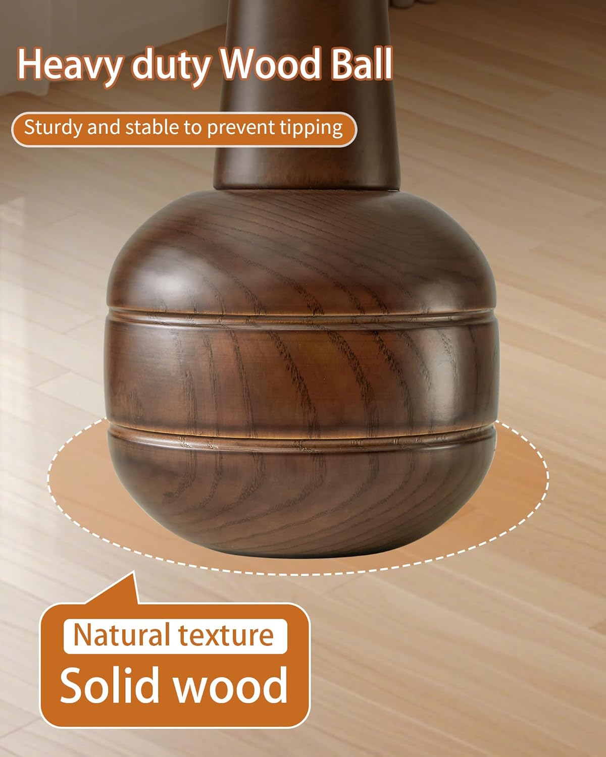 - REINFORCED AND STABLE - FOUR-LEG BASE: This wooden coat racks features a thickened four-cornered base, an extended and raised 6.7inch diameter solid wood ball, and a reinforced main stem, ensuring excellent balance and stability, preventing it from falling even when shaken. This wooden coat stands can hold up to 180 pounds, allowing you to hang heavy coats and down jackets for extended periods without losing their shape. Far more sturdy than standard plank hangers, this wooden coat tree freestanding provides a reliable storage solution for modern homes