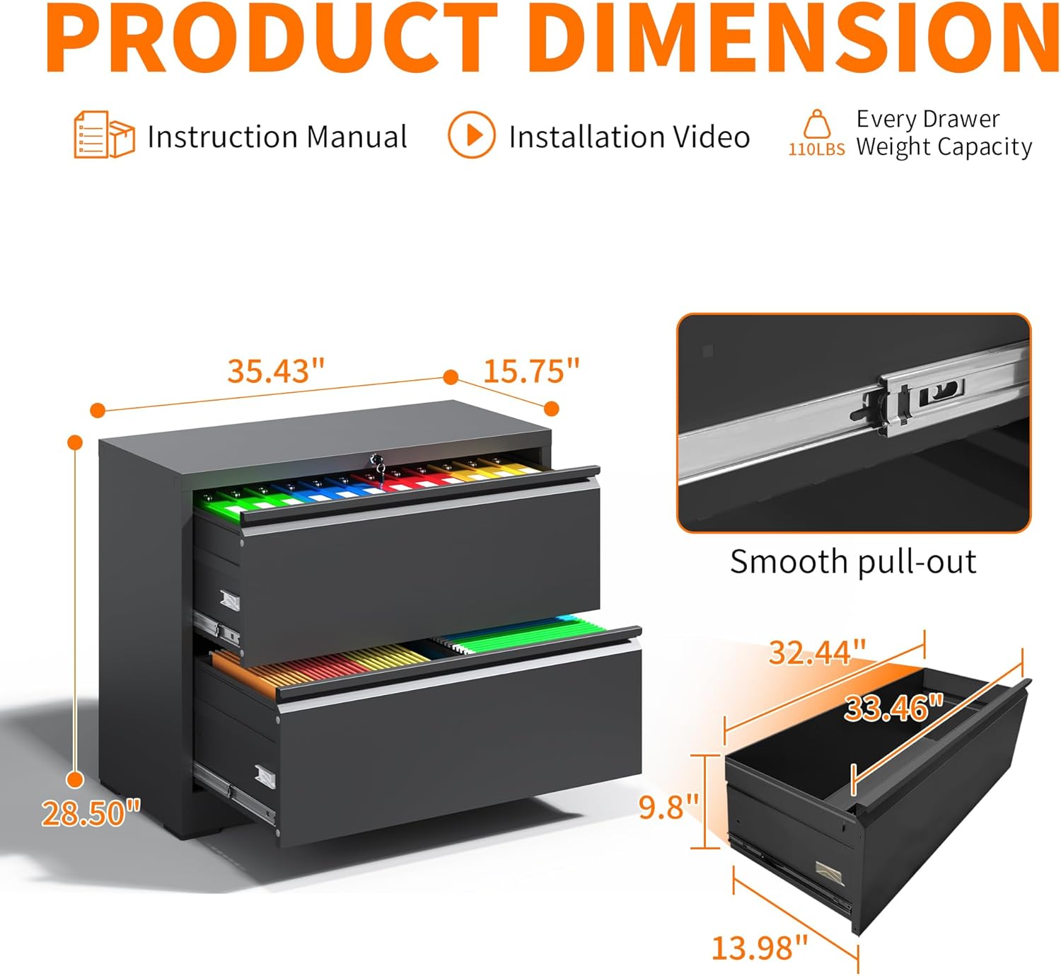 - 【Solid & Durable】Crafted from whole-in-one reinforced high-strength cold-rolled steel, this locking lateral file cabinet ensures remarkable sturdiness and longevity. Each drawer can bear a maximum load of up to 110lbs, showcasing its robust construction. The combination of a strong structure and a powder coating surface process makes this wide cabinet highly resistant to rust, scratches, and ensures easy cleaning, maintaining its pristine appearance over time.