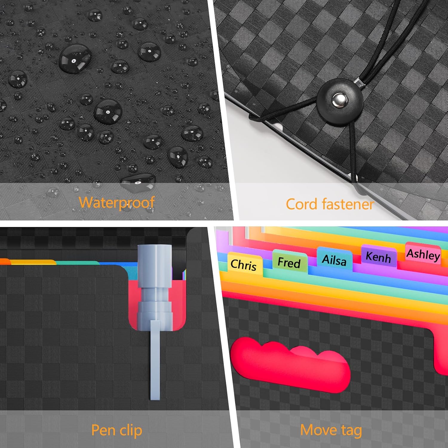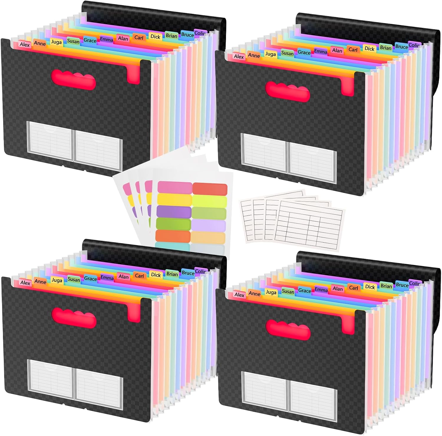 4 Pack Waterproof Accordion File Organizer, 13 Pockets Expanding File Folder with Colored Blank Tabs, Suitable for Students and Office Workers to Manage and Store Documents(Black)