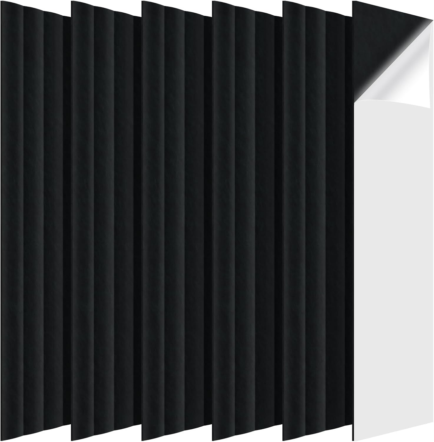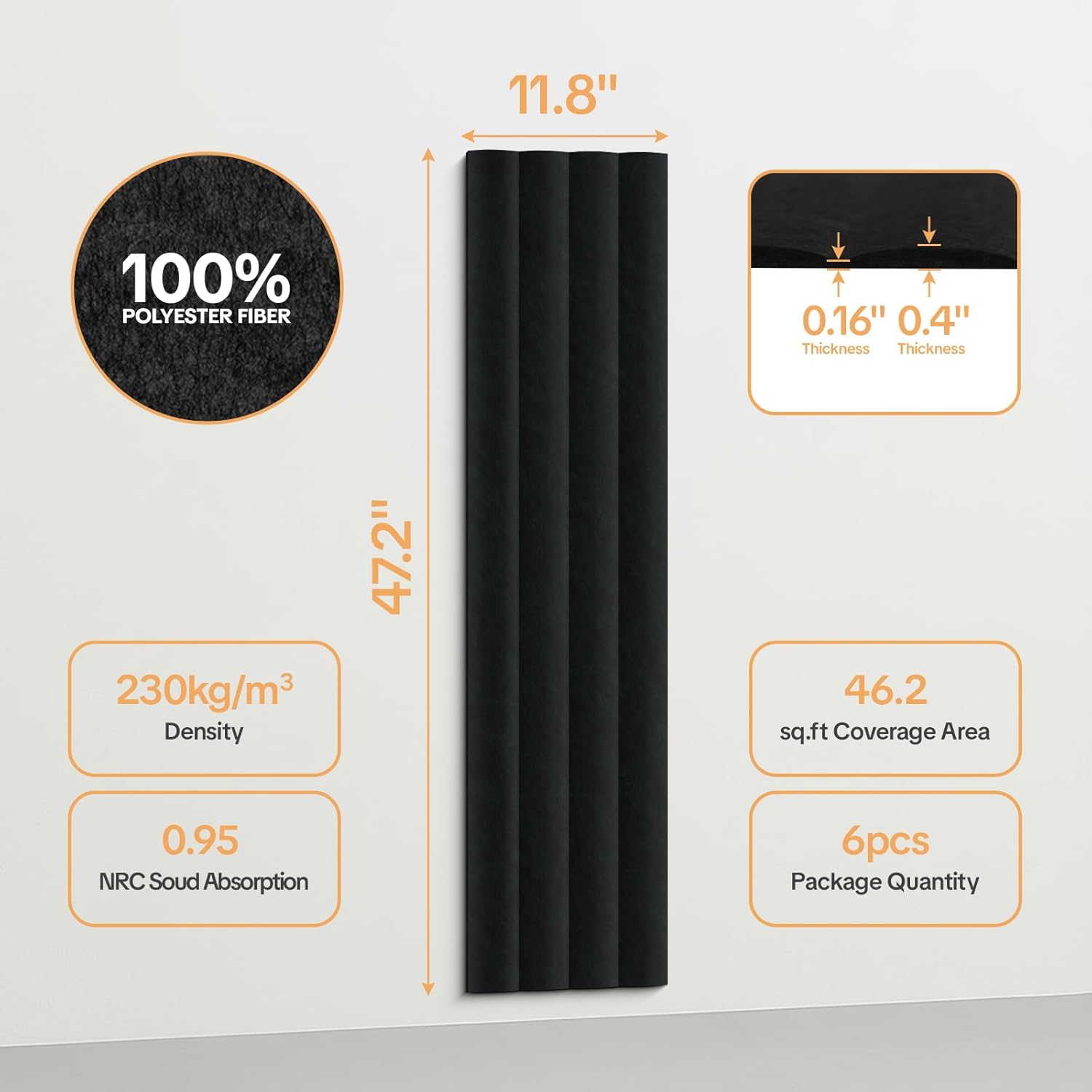 6 Pack Acoustic Panels 3D Wave Sound Proof Foam for Walls, 47.2"x11.8" Self-Adhesive Sound Absorbing Panels for Noise Reduction in Home Office & Studio, Decorative Wall Tiles (Black)