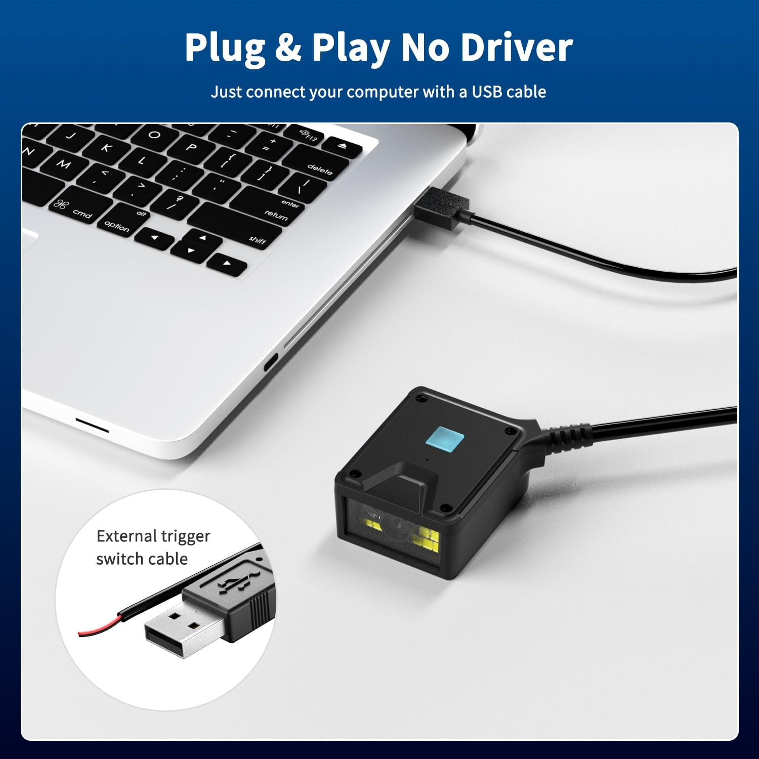 - 【Excellent Scanning Performance】NetumScan fixed scanner adopts 640×480 CMOS sensor and wide-angle optical lens, which can quickly identify various 1D/2D barcodes, 1D: EAN, UPC, Code 39, Code 93, Code 128, UCC/EAN 128, GS1 Databar, GS1 Composite Code, Code 11, Industrial 25, Codabar,Interleaved 2 of 5, ITF-6, ITF-14, ISBN, ISSN, MSI-Plessey,Standard 25, Plessey, Matrix 2 of 5; 2D: QR Code, Data Matrix, PDF417, Aztec, Maxicode, Hanxin Code, etc.
