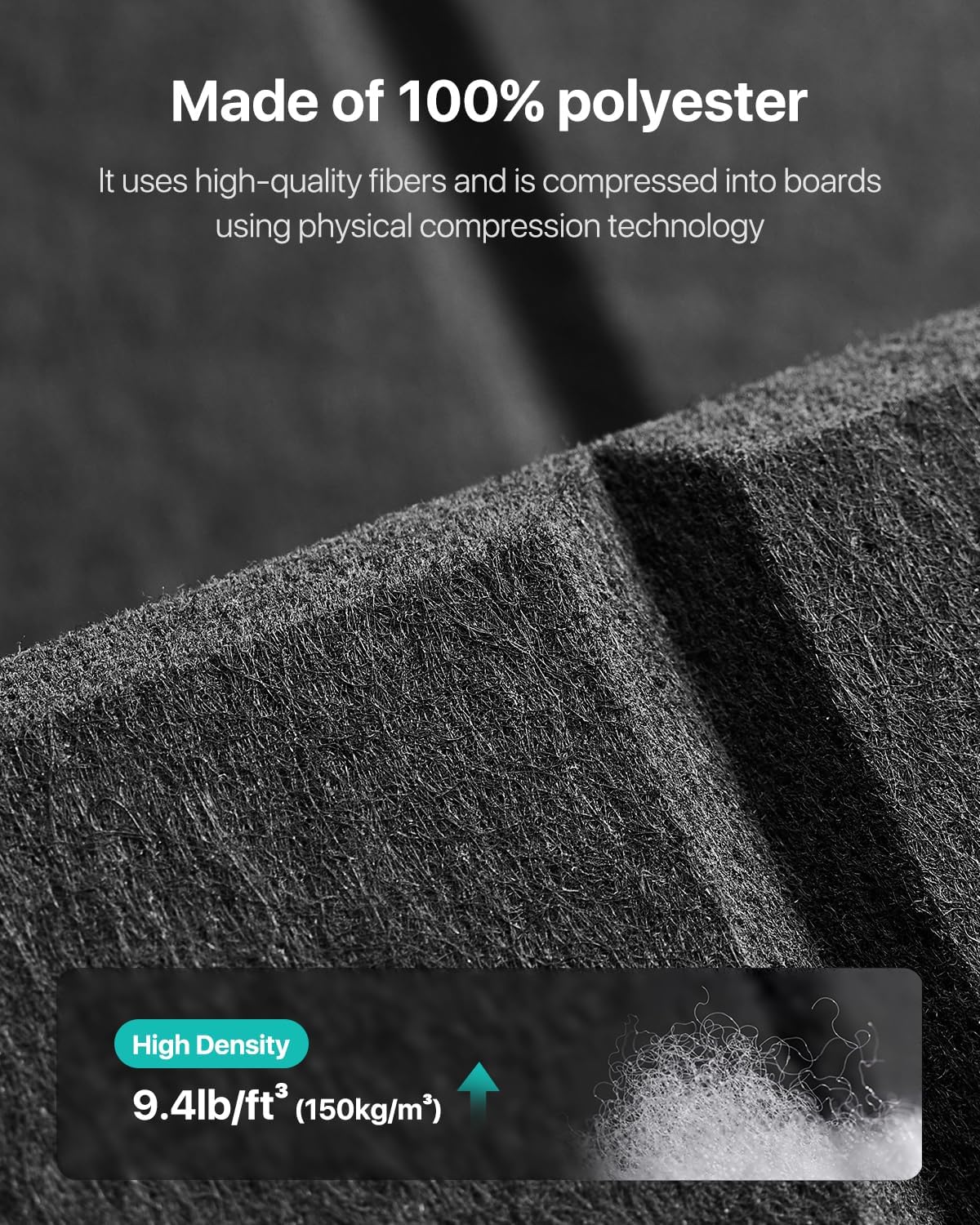 - Premium Acoustic Material: Designed as high-density sound proof foam panels, these 100% polyester fiber acoustic panels optimize audio precision and durability.