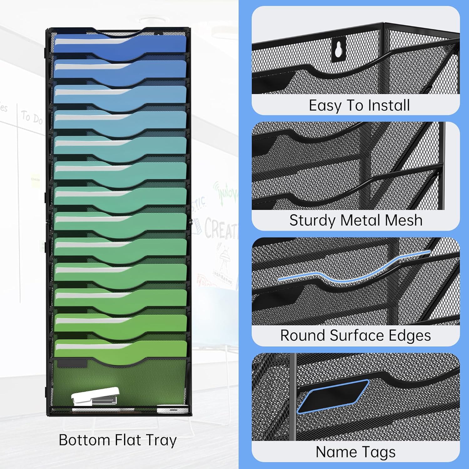 Kuntine.B Wall File Organizer Office Hanging Magazine Holder Wall File Organizer for Office Home (Black, 15 Tier)