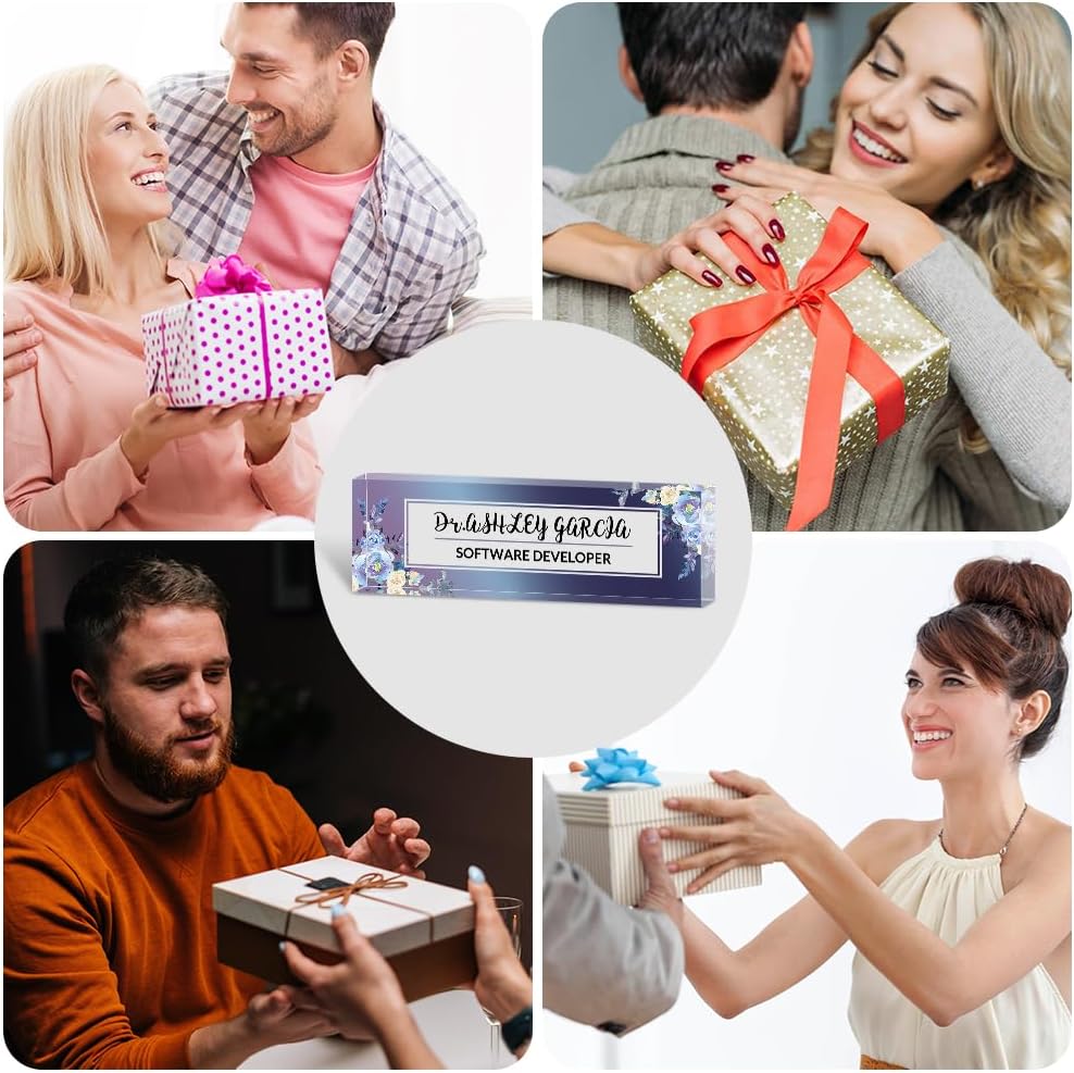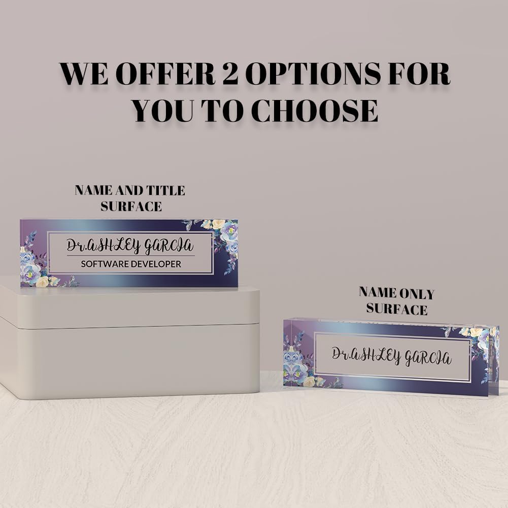 Personalized Office Desk Name Plate on Acrylic Glass - Custom Nameplate Decor, Accessories - Gift for Boss, Coworkers