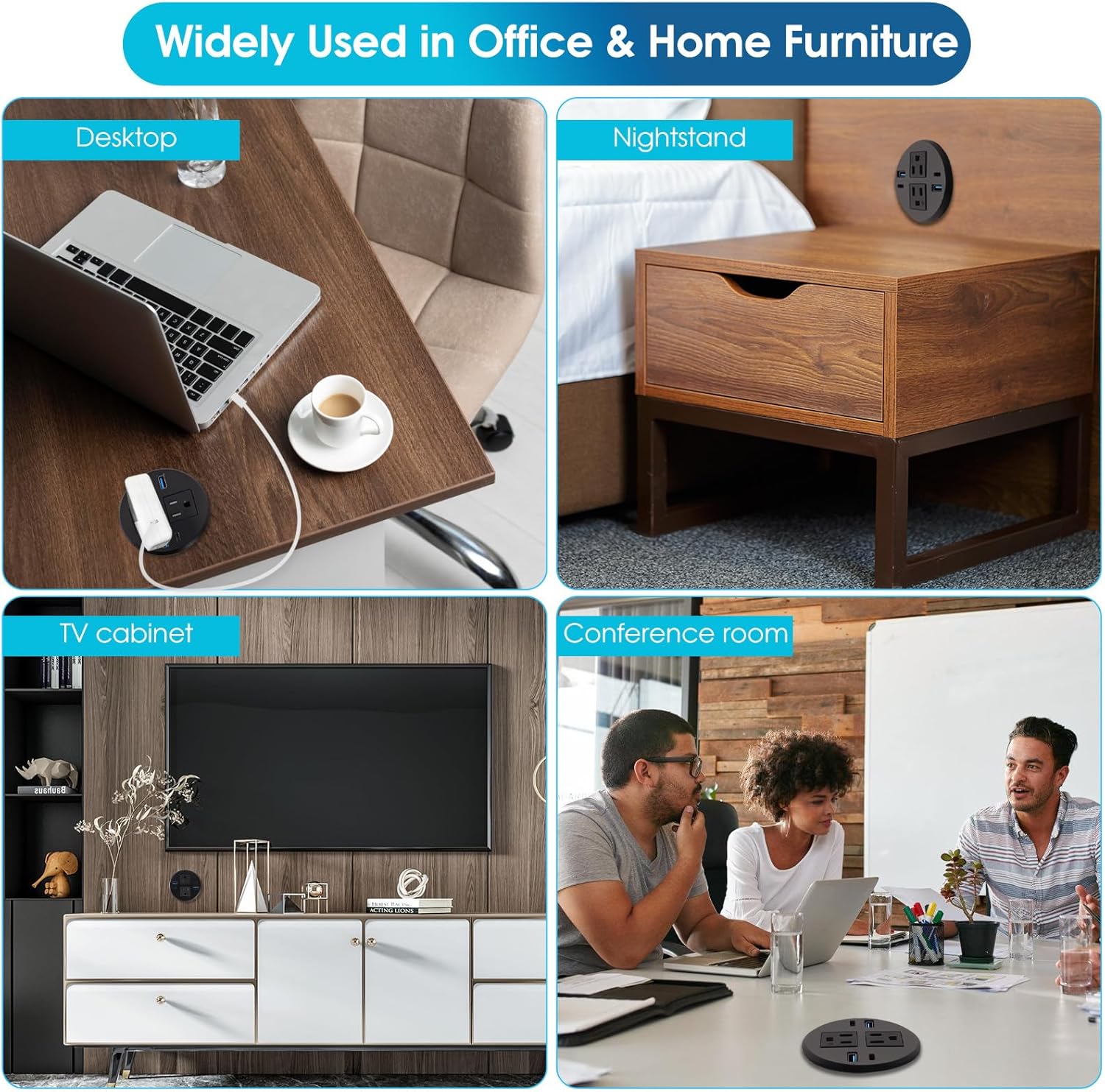 - DESK OUTLET: Flush-mount power grommet integrates seamlessly into furniture—keeping desks and conference tables clutter-free while charging multiple devices neatly.