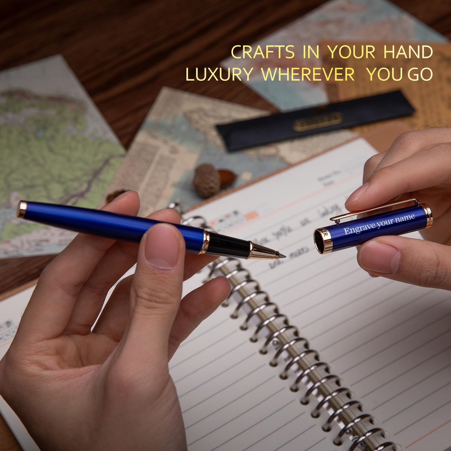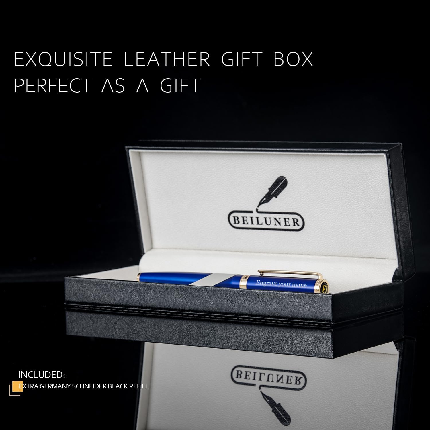 BEILUNER Blue Personalized Pen,Stunning Luxury Lacquer With 24K Gold,Schneider Ink Refills,Multiple Fonts To Custom Rollerball,Gift Pen For Men & Women,Executive,Graduation,Christmas,Nice Fancy Pens