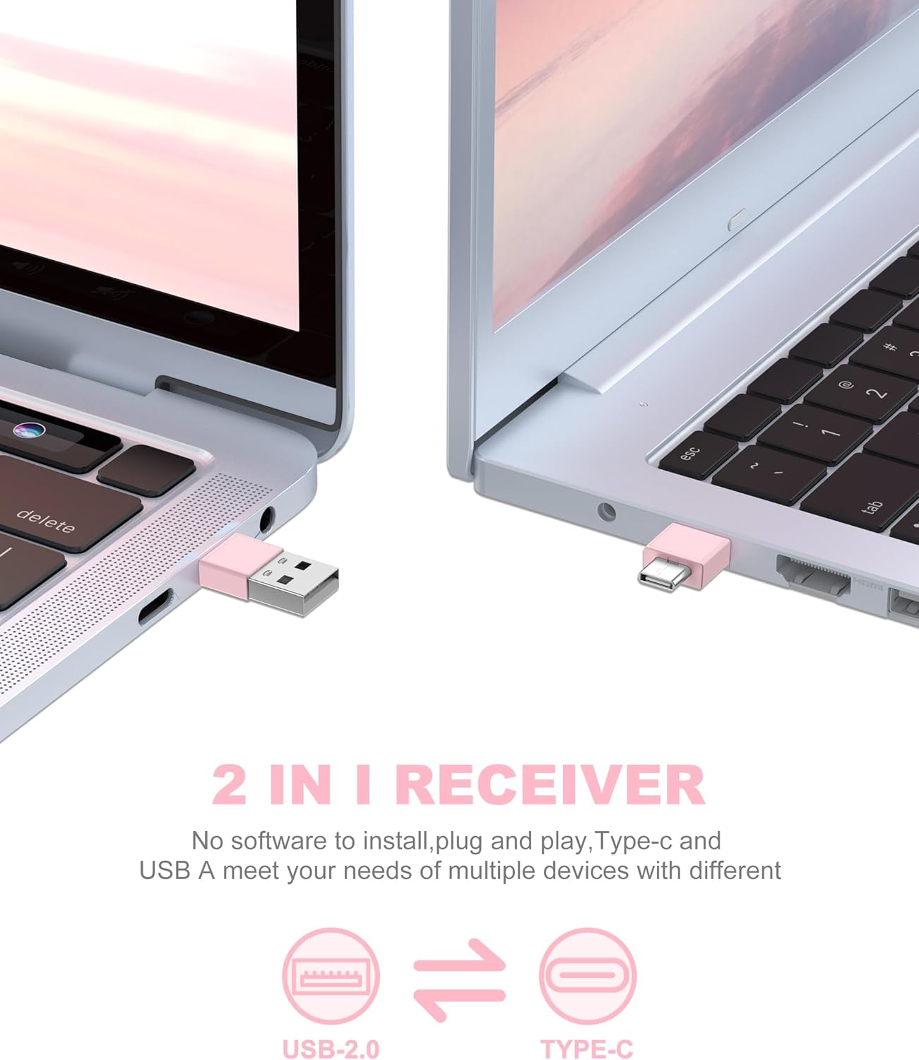 - 【USB-A & USB-C Presentation Clicker Pink】The rechargeable presentation remote features both USB-A and USB-C connections in one presenter clicker, allowing it to suitable for different types of device,such as macbook,laptop,pc