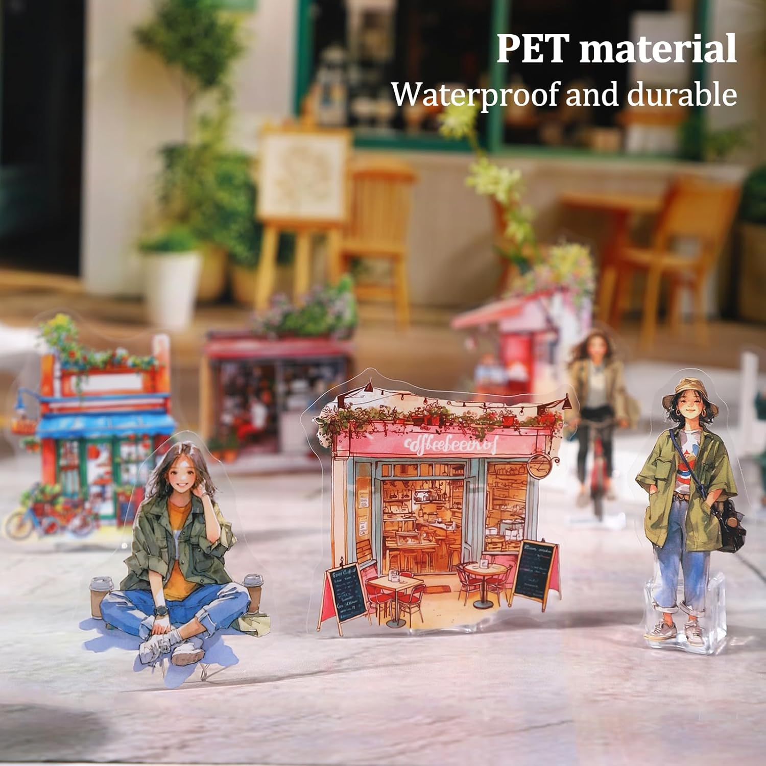 Coffee Memories PET Stickers, 120 PCS Vintage Cafe Scene Stickers for Scrapbook, Journals, Planners and DIY Craft Decoration