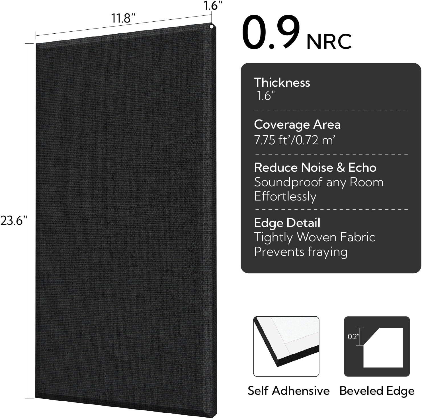 - Sound Dampening Panel 4 Pack: 11.8 X 23.6 Inches per sound proof panel for walls. Olanglab sound absorbing acoustic panel is 1.6'' thick, thicker than conventional 1'' panels, resulting in better sound absorption.
