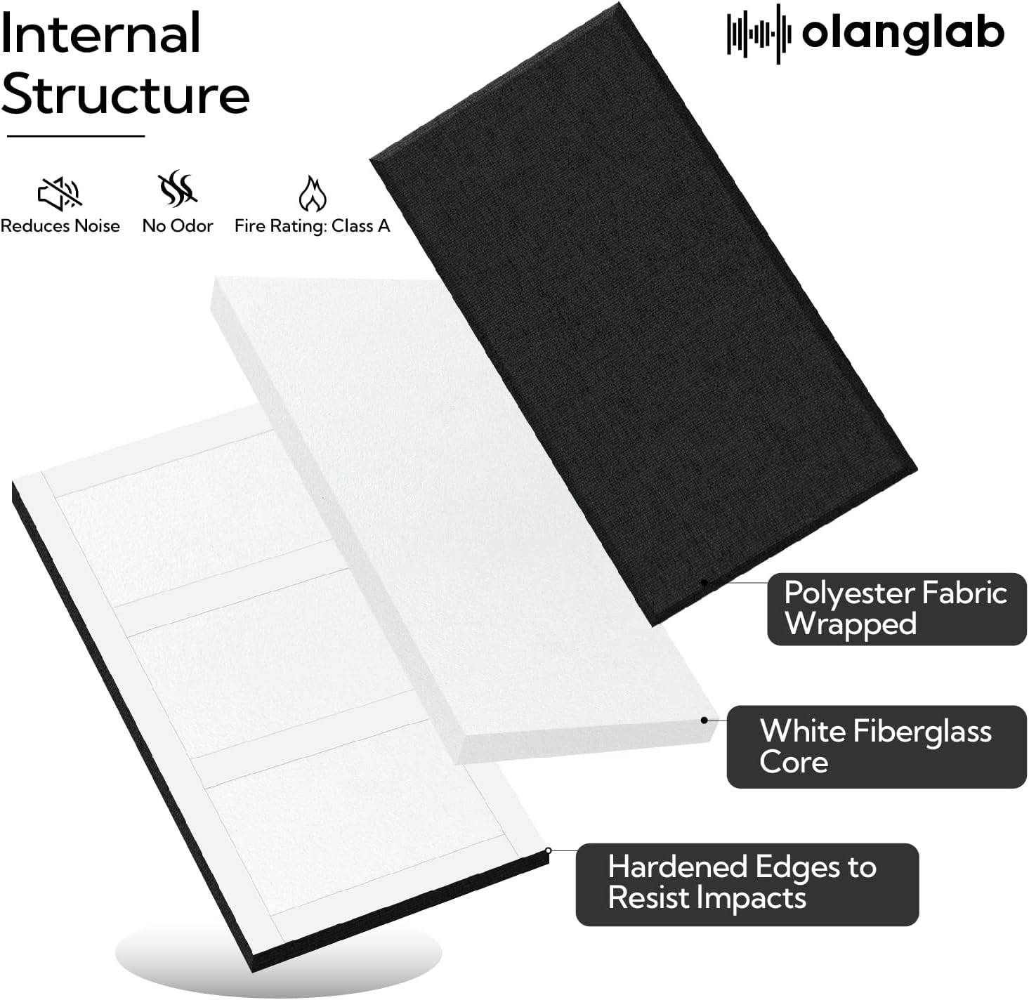 - Thick Fiberglass Core: Olanglab acoustic panels features high density fabric covering that allows sound to pass through and be absorbed by the dense White fiberglass inside.