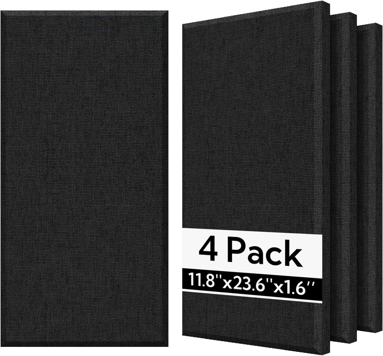 Olanglab Fiberglass Acoustic Wall Panels 4 Pack, 11.8'' x 23.6'' Sound Panels, Fabric Wrapped Sound Proof Panels for Walls (Black)