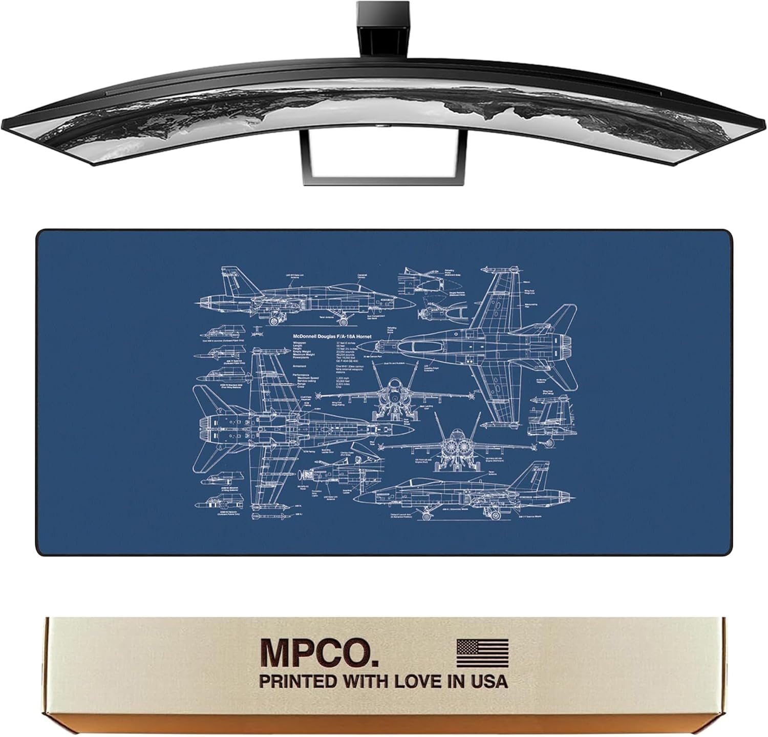 MPCO. Blueprints Large Gaming Desk Pad - 36" x 17" Aeroglyde Fabric 18A Hornets – Blue Desk Mats - Non-Slip, Washable, Smooth Glide for Precision Gaming & Work
