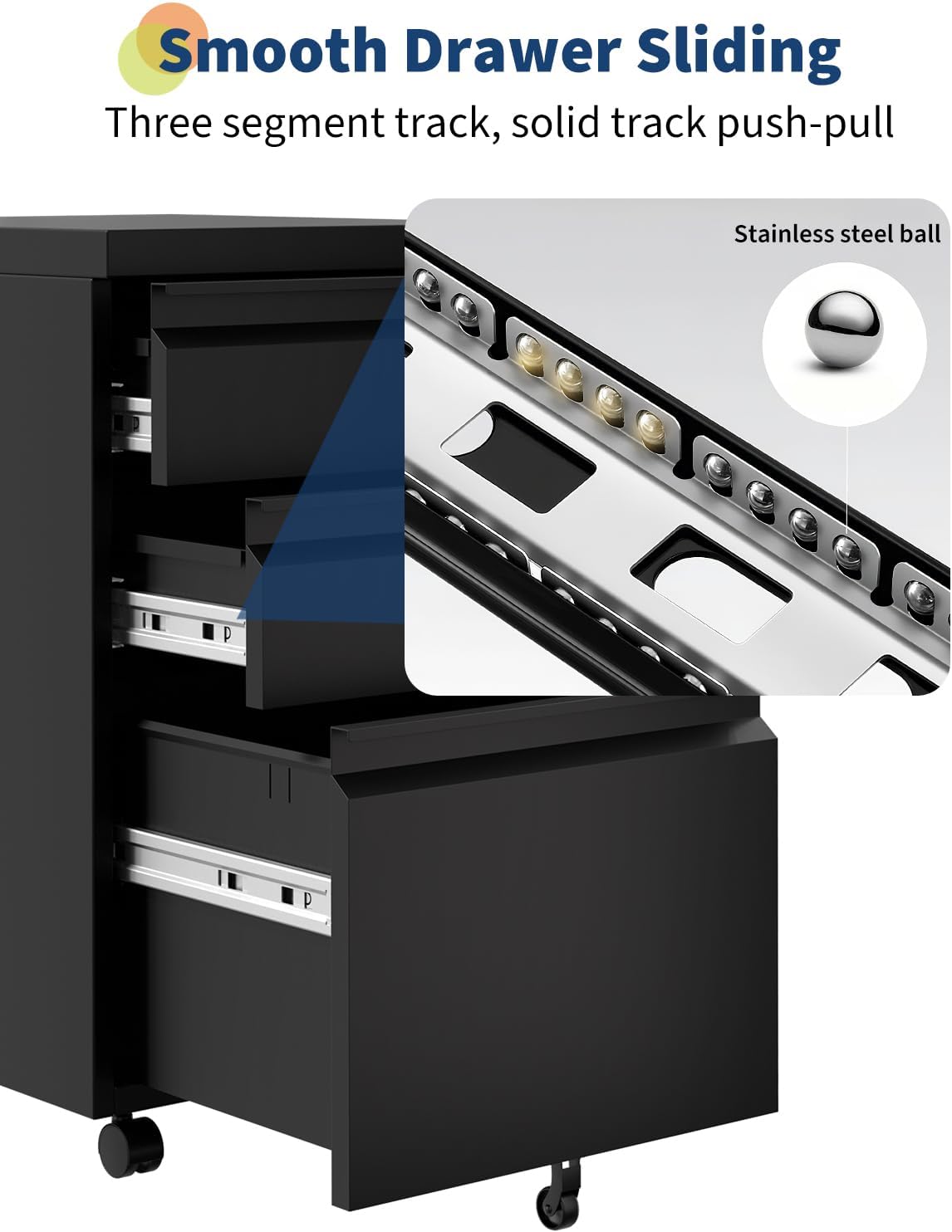 - ENHANCED SAFETY - The mobile file cabinet includes a single locking mechanism with two keys, securing all three drawers to protect your important documents, while an interlocking system ensures only one drawer opens at a time to prevent tipping