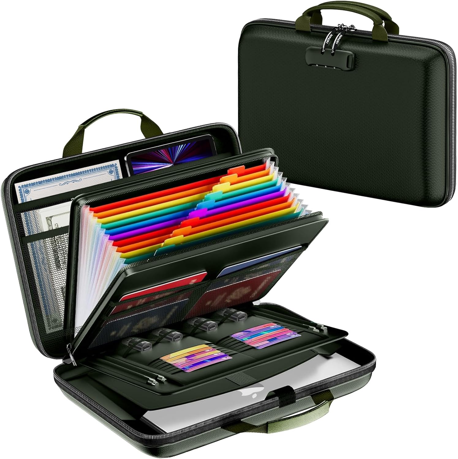 - Double Protection With Handle: Our fireproof file organizer feature mechanical combination locks to provide a secure for your important document. Upgraded double-opening metal fireproof zipper is easy to open and close, no need to worry about fire getting inside the file box through the zipper. Comfortable and sturdy leather carrying handles and stylish appearance, perfect for home, work, travel, business.
