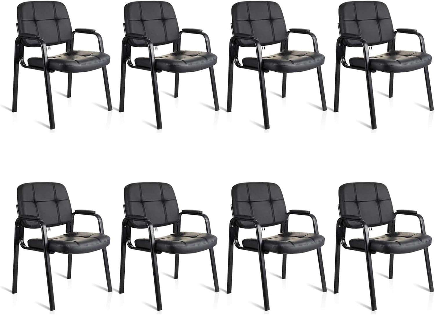 CLATINA Waiting Room Guest Chair with Bonded Leather Padded Arm Rest for Office Reception and Conference Desk Black 8 Pack