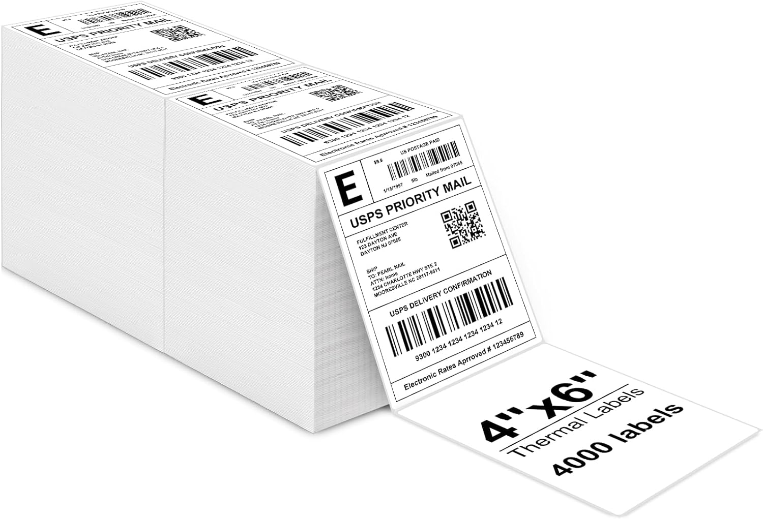 Bulk 4x6 Thermal Labels - 4000 Adhesive Labels | Smudge-Resistant & BPA-Free | Thermal Printer Compatible
