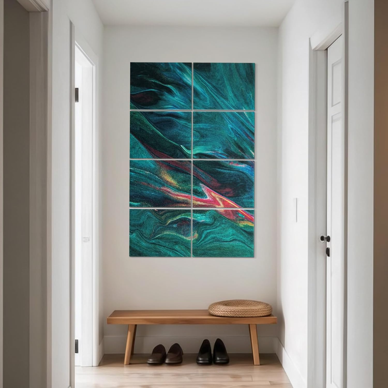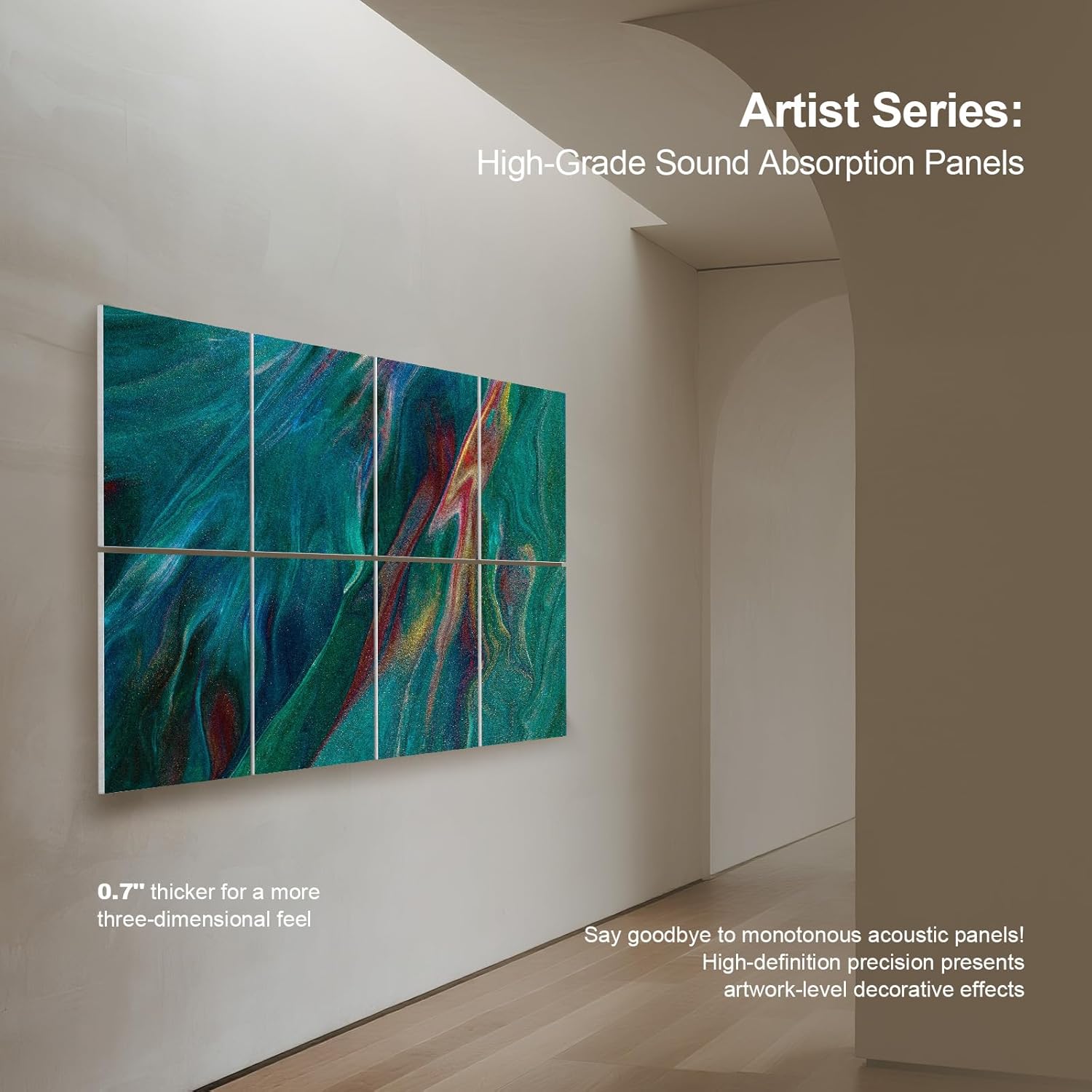 UMIACOUSTICS 8 Pcs 0.7Inch Thick Art Acoustic Panels, Total 47.2” x 31.5” Decorative Sound Absorbing Art Panels, Acoustical Wall Panels for Home, Office, Hotel, Turquoise-Light