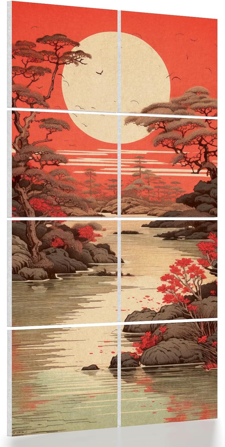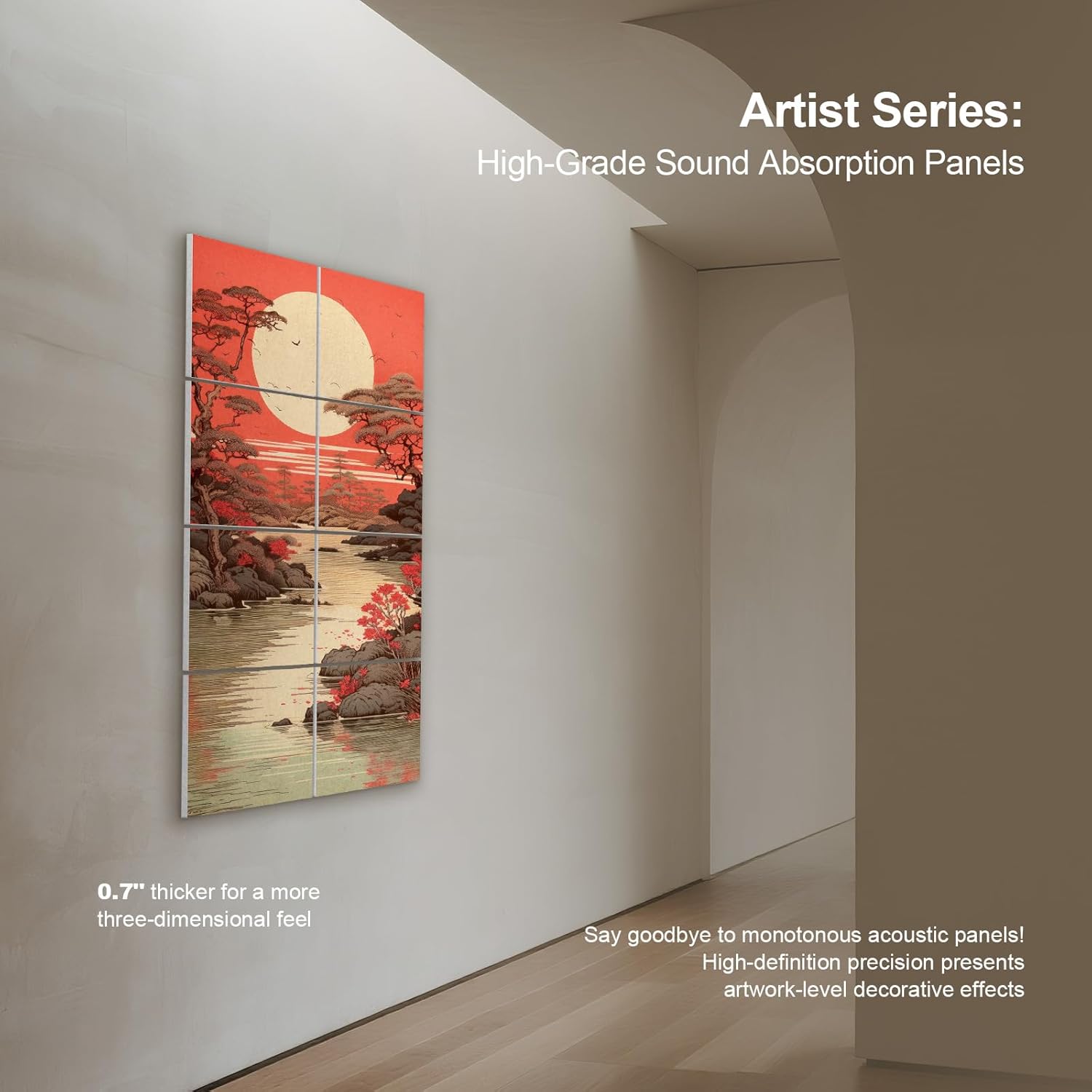 UMIACOUSTICS 8 Pcs 0.7Inch Thick Art Acoustic Panels, Total 47.2” x 23.6” Decorative Sound Absorbing Wall Panels for Home, Office, Hotel, Pine-shadow Floating Paint