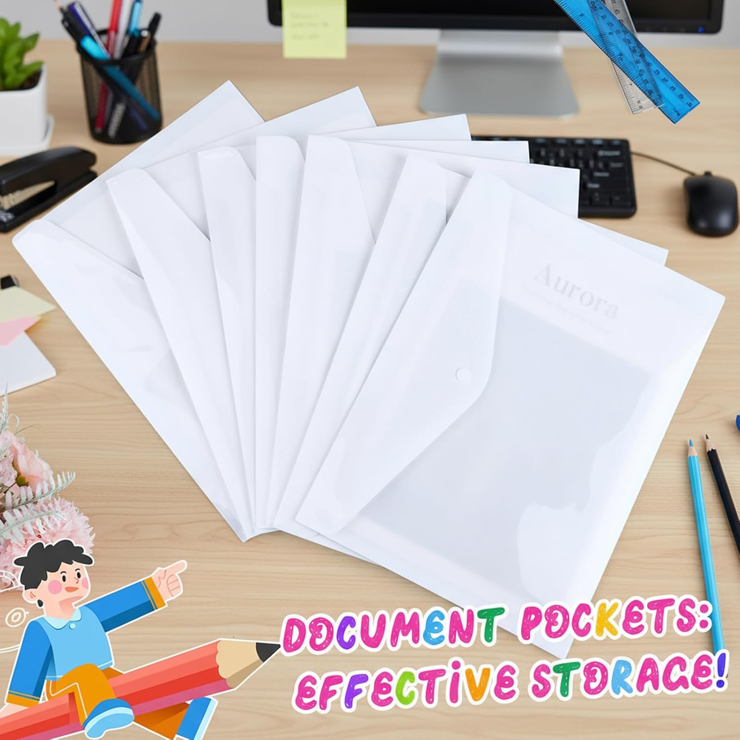- 100 Envelope Folders: each package contains 100 milky clear document envelopes with snap button, sufficient quantity, enough to meet your daily bulk storage needs for documents, bills, receipts, etc., keep your documents tidy and safe