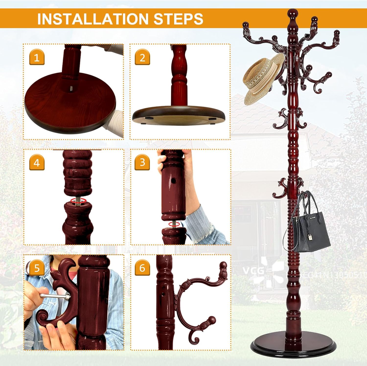 - AAAAA Grade Birch wood Material: This coat rack is made of eco-friendly paint and natural birch for a sturdy, vintage-inspired elegance. The solid, thickened round base provides excellent stability. The freestanding coat rack can hold up to 200 pounds, making it easy to hang multiple pieces of clothing without wobbling.