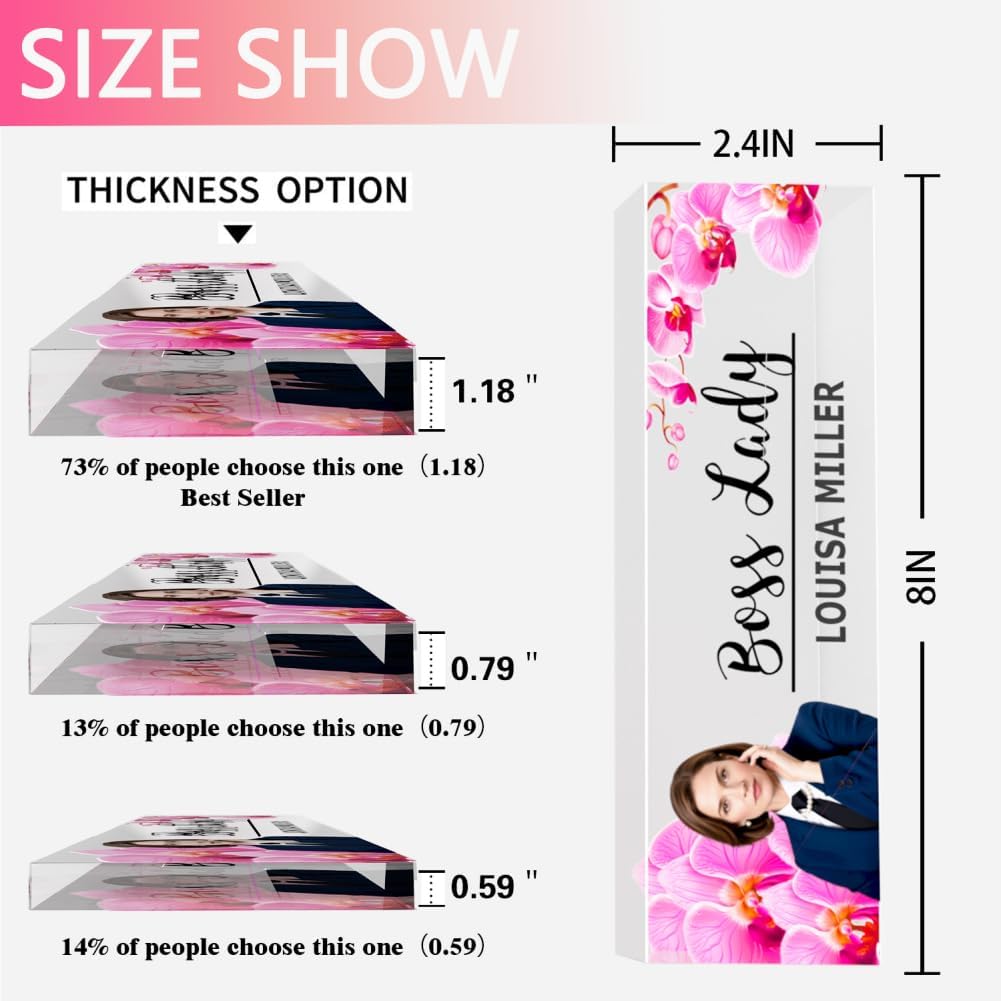- 📐【Thickness Customization】 Select 0.59" (lightweight), 0.98" (standard), or 1.2" (premium) acrylic to match desk space or gifting needs (e.g., 1.2" for lawyer name plates).