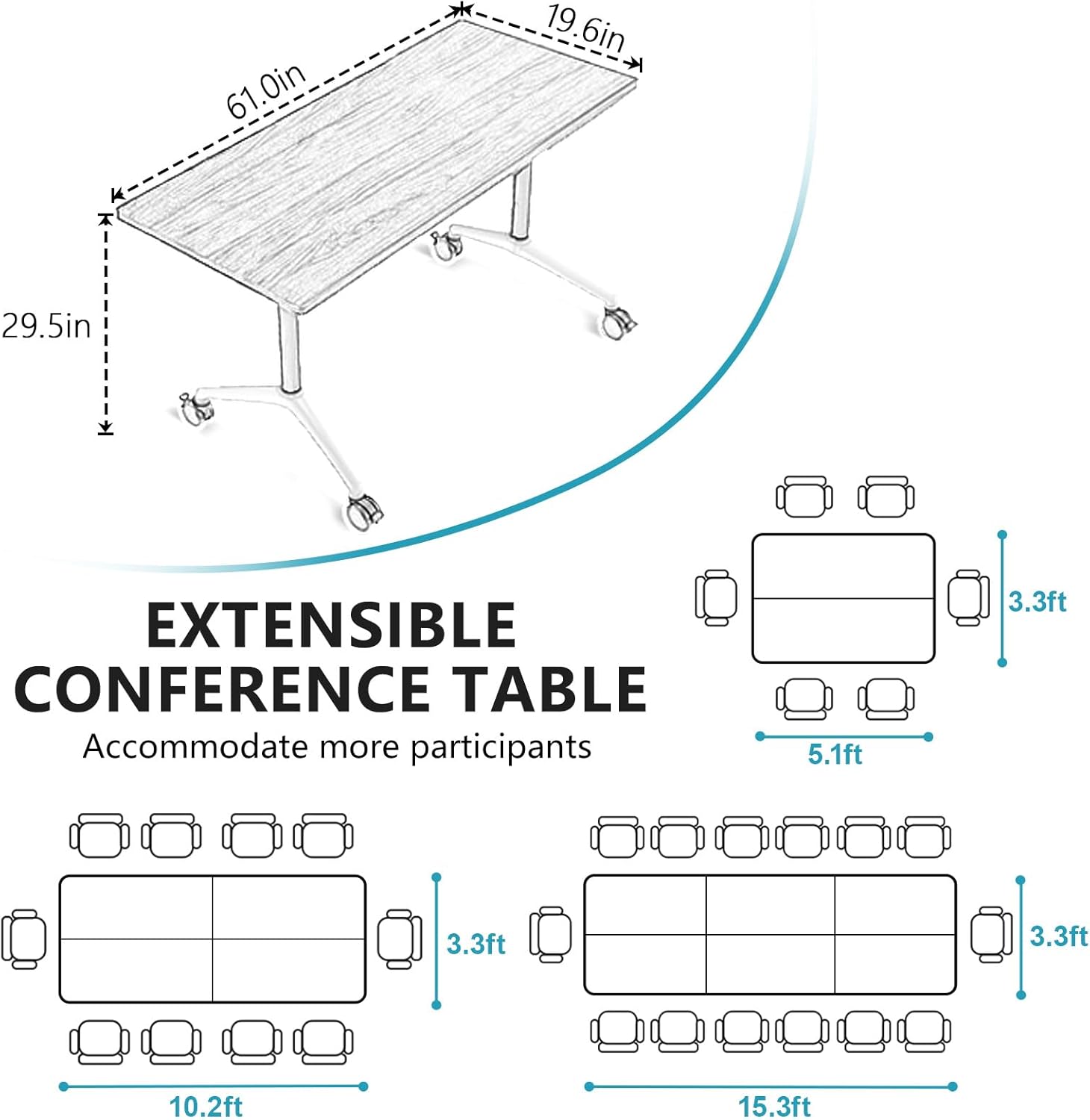 Conference Room Table, Folding Conference Tables,Thicken Grey Tabletop,Flip Top Wooden Seminar Meeting Room Table for Conference Room Offices (8, BlackWoodGrain, 61.0“)