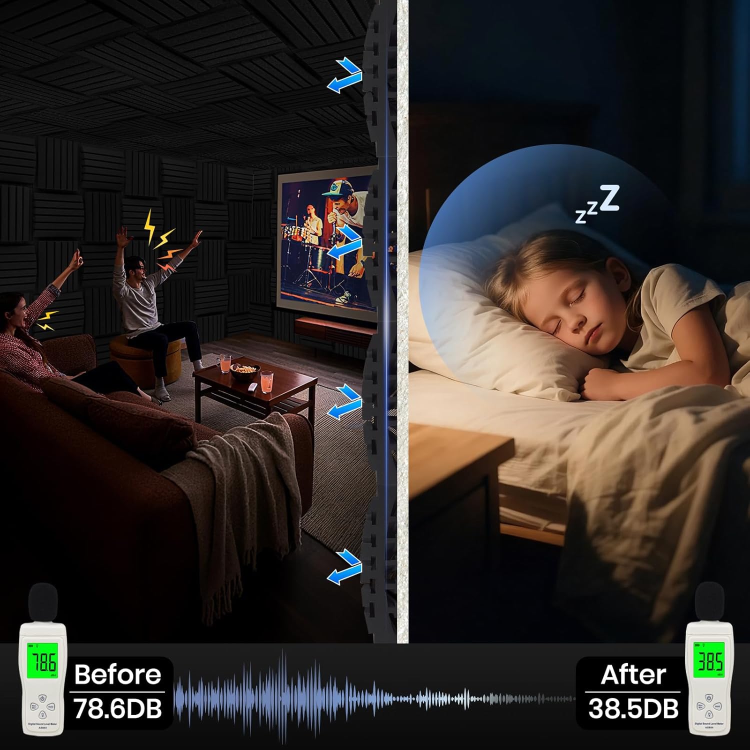 - Quick Setup, Instant Results – Each set comes with strong double-sided adhesives for fast installation on walls or ceilings, so you can enjoy soundproofing and improved acoustics immediately without extra tools