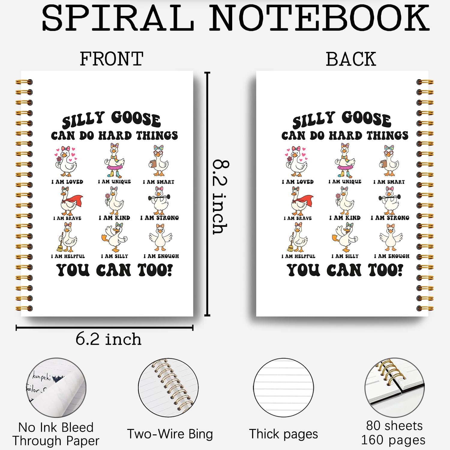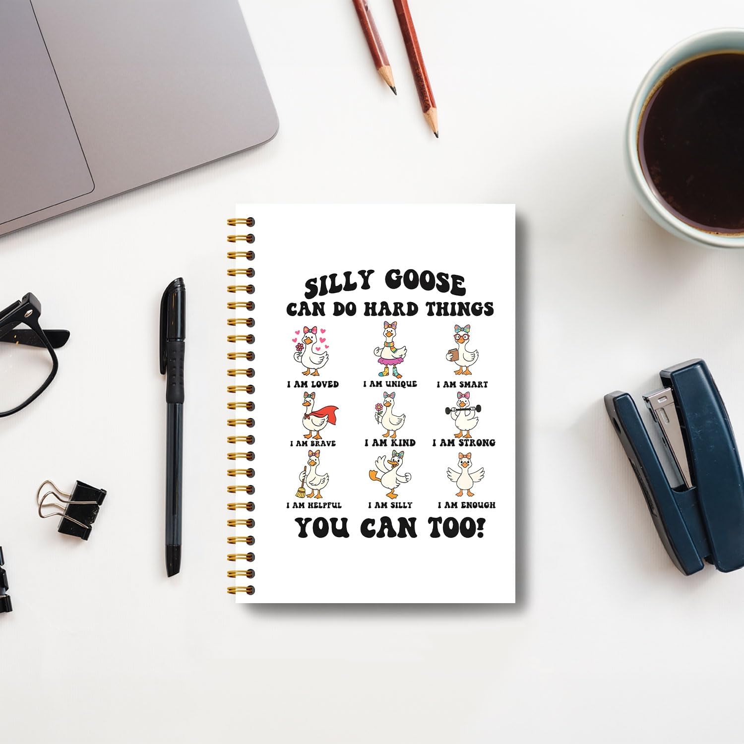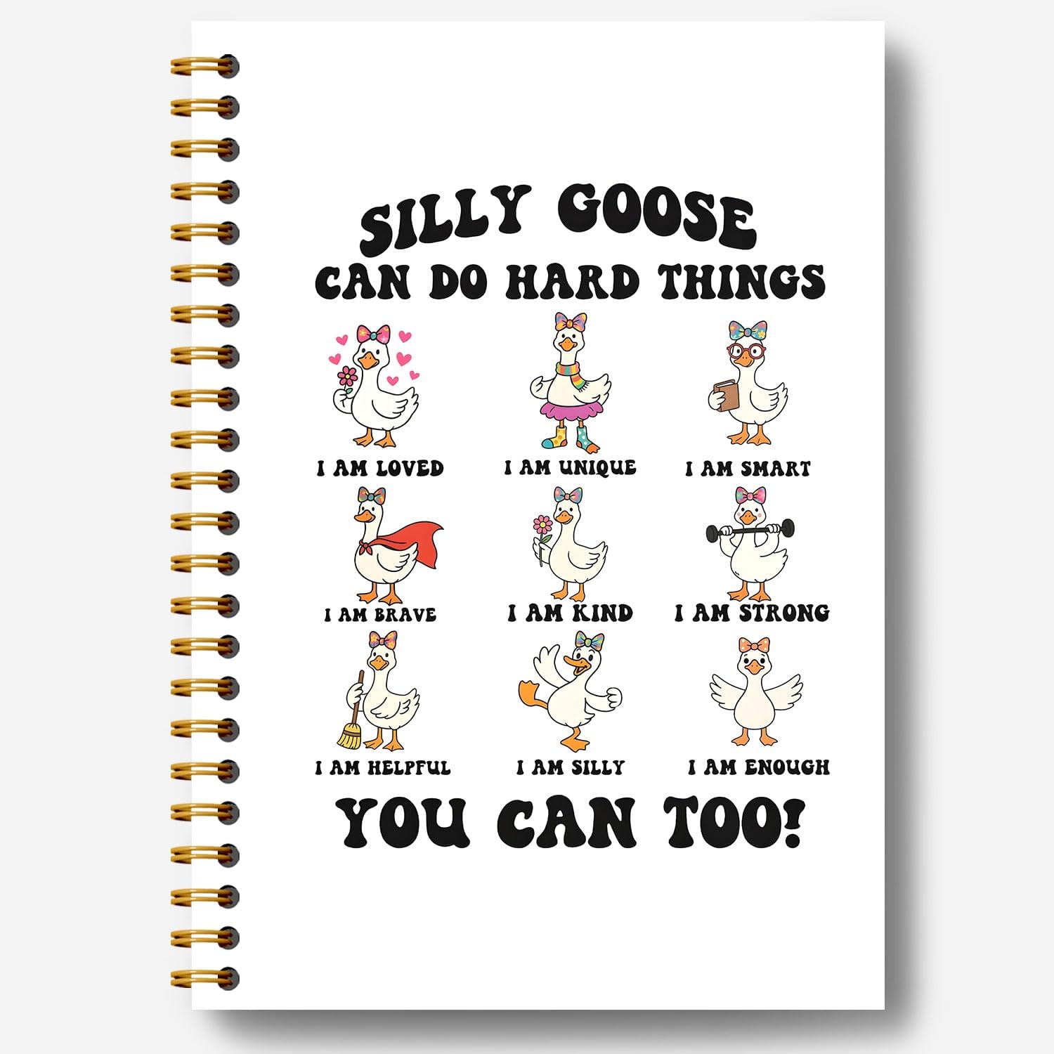 Guymn Coquette Bow Goose Inspirational Notebook, Positive Affirmation Journal for Kids Girls, Goose Can Do Hard Things Motivational Hardcover Spiral Notebooks Journals 5.5x8.3 Inch