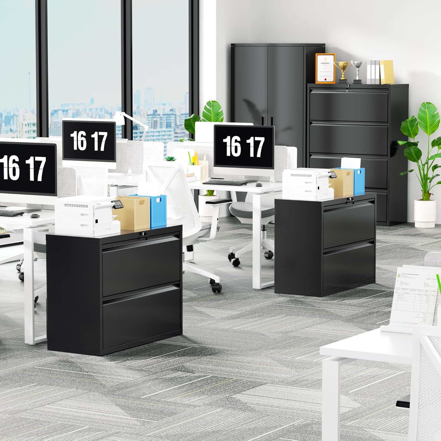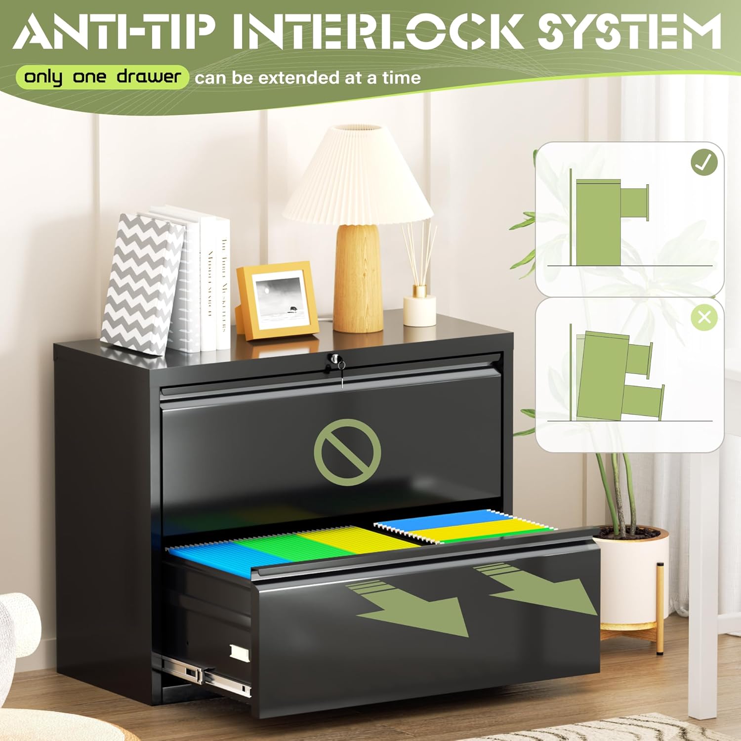 Incbruce Lateral File Cabinet with Lock, 28" W 2 Drawer Filing cabinets for Home Office Home, Office, Fit A4/F4/Letter/Legal File, Under Desk Filing Cabinet (Black)