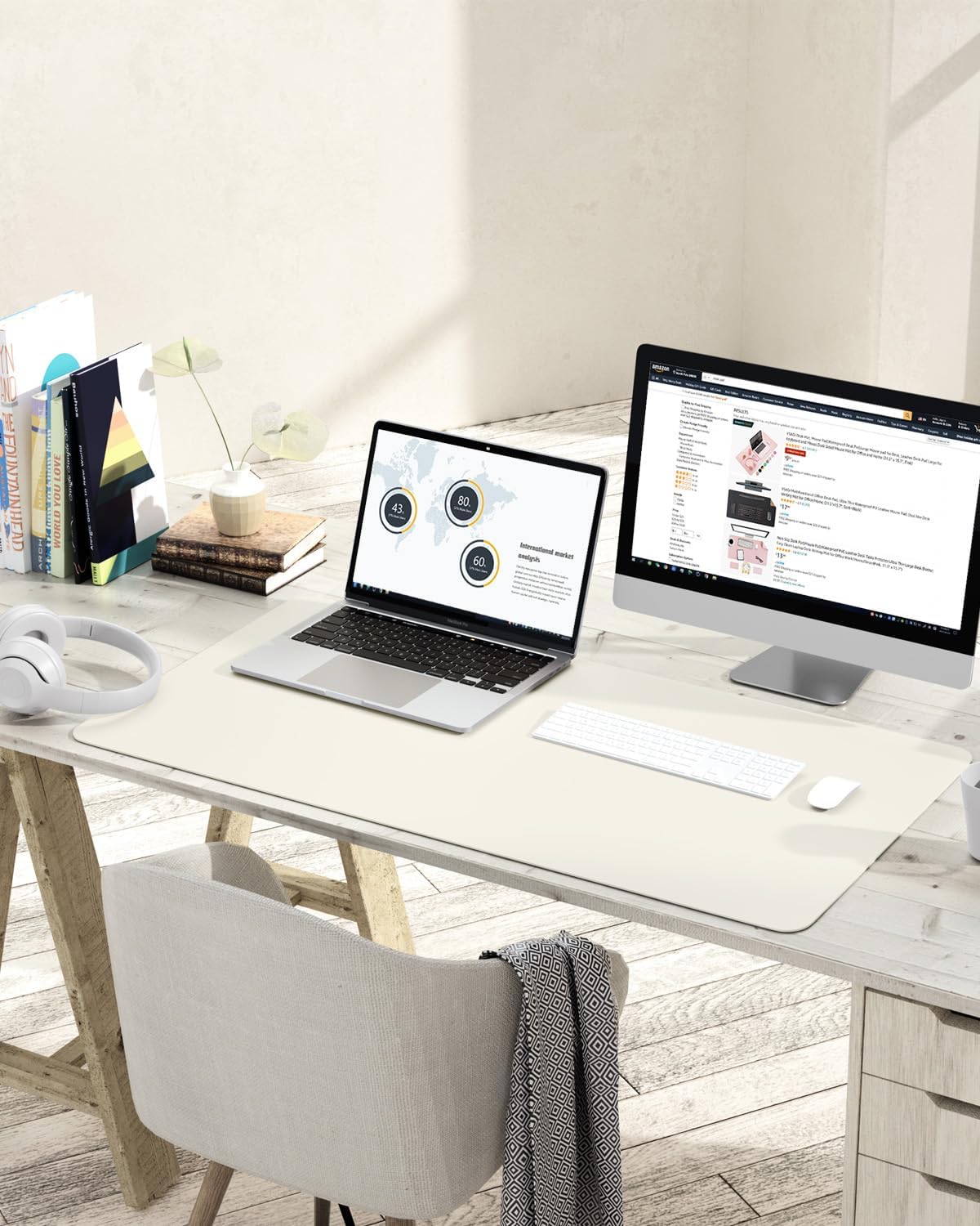 YSAGi Non-Slip Leather Desk Pad, Desk Matt for Desktop, Waterproof Laptop Computer Keyboard Mat, Table Protector Blotter Mat, Large Mouse Pad for Office/Work/Home/Decor(Cream, 35.4" x 17")