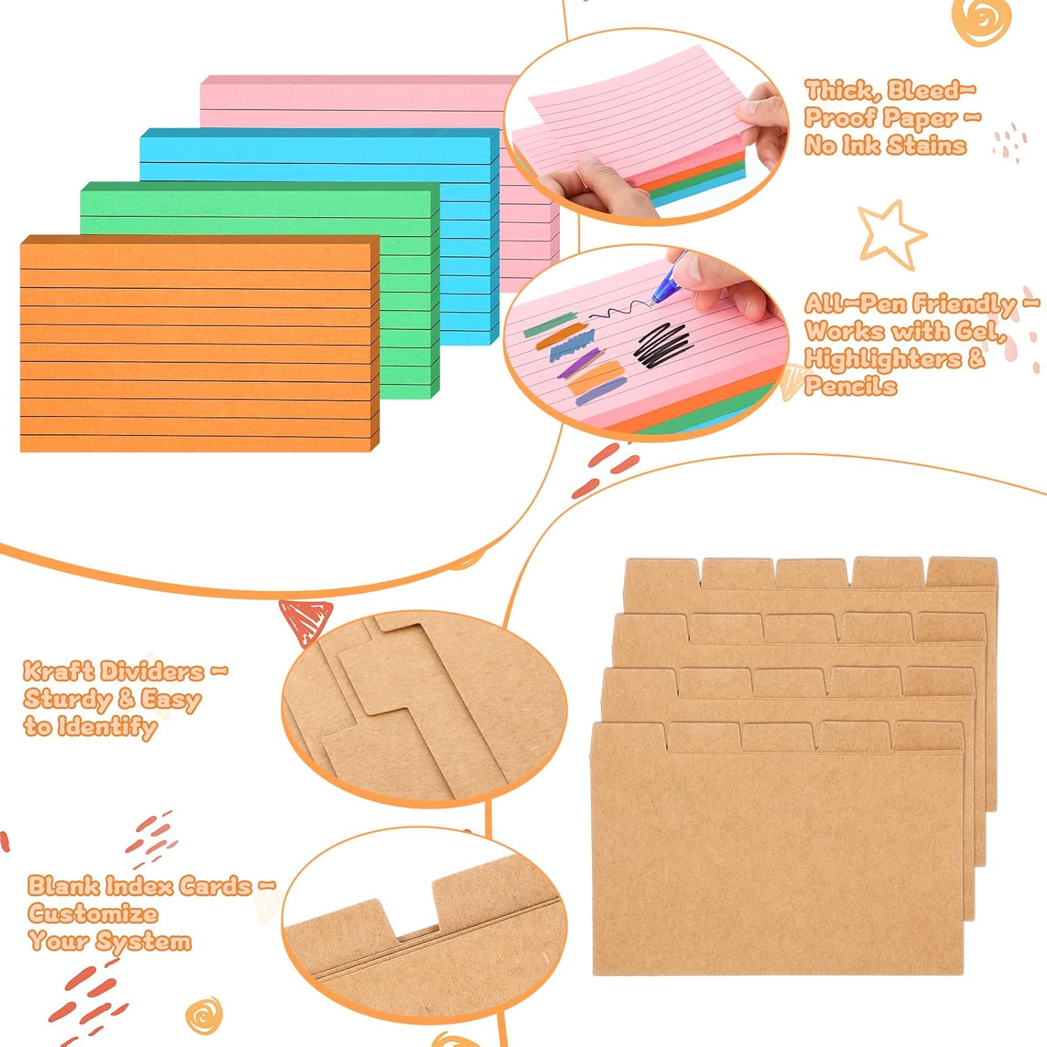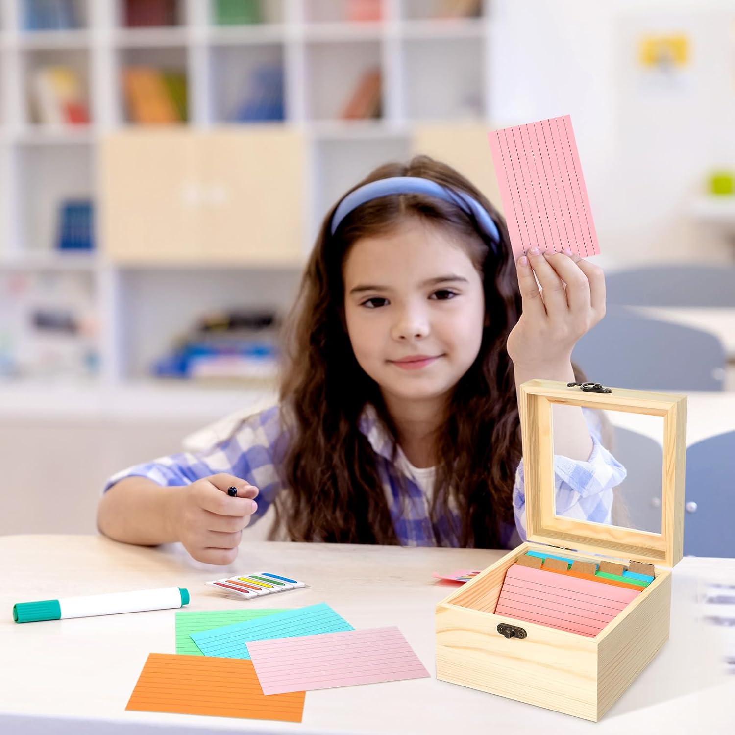 - Complete 3x5 Inch Organization Set: includes 200 index cards (50 sheets in each of 4 colors), 30 kraft paper dividers, and a spacious wooden storage box (5.9"x5.9"x3.9"), everything you need for efficient note-taking and categorization