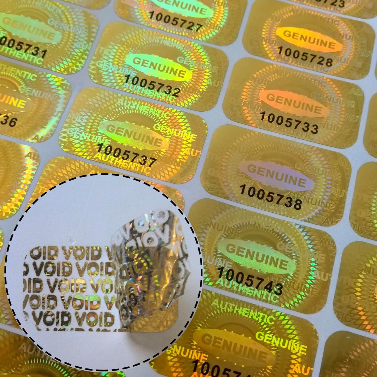 5200 pcs Hologram Tamper Proof Sticker, Security Tamper evident Label, Genuine Authentic Warranty Void Seal Labels with Unique Serial Number (1.2X0.68 inch,Glod)