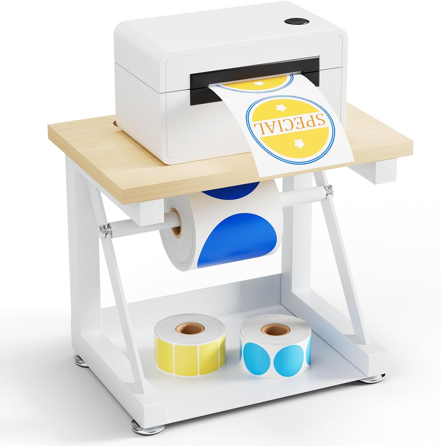 - 【Sturdy Construction】Our rollo label holder is constructed with matte black metal frame and high-quality wood, with better load bearing capacity, with anti slip foot pads at the bottom. The pole can be freely adjusted for tightness. Thermal printer stands providing you with a smooth printing label experience