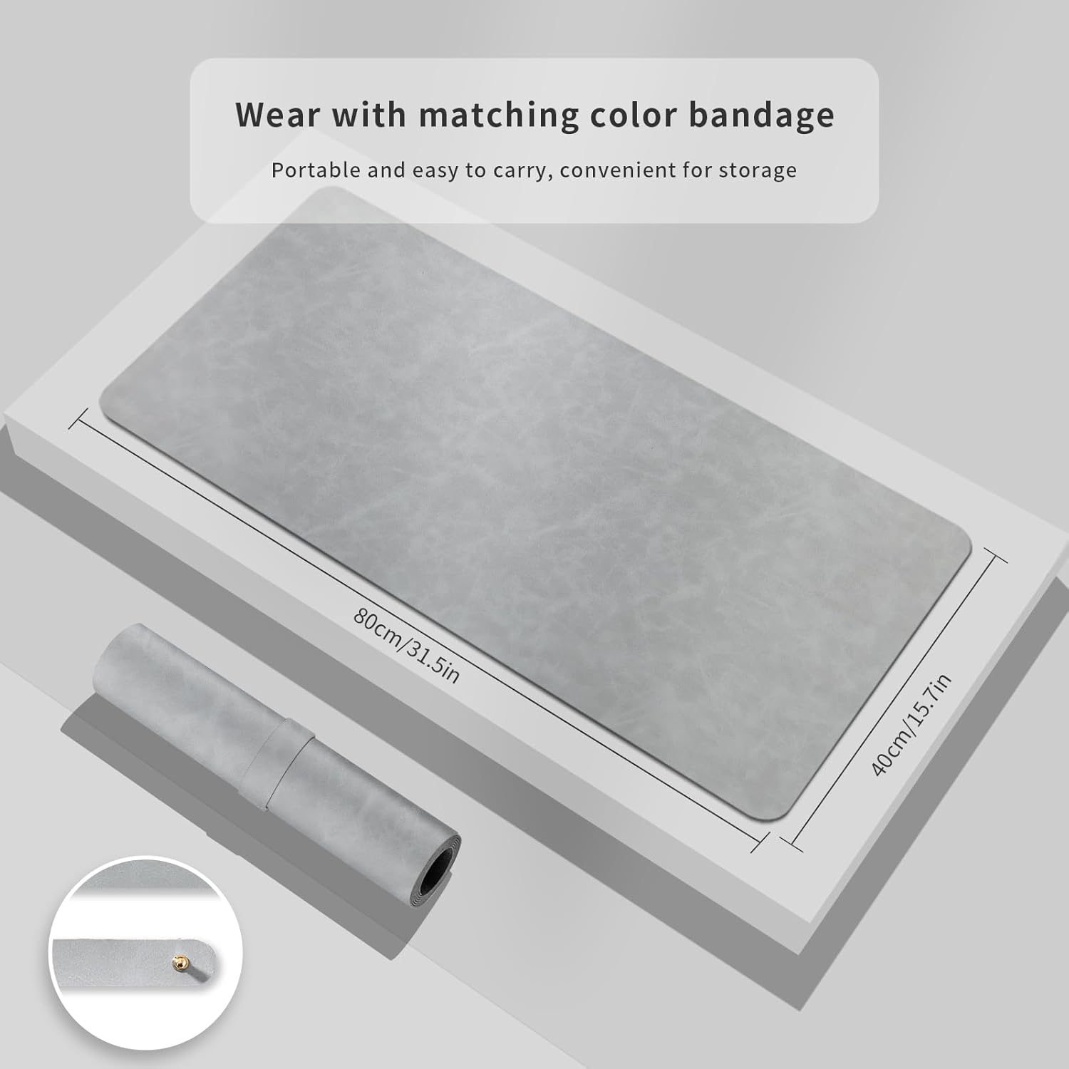 Crazy Horse Leather Desk Mat Large Mouse Pad Laptop Desk Pad Waterproof Non-Slip Table Blotter Desktop Writing Pad for Office and Home (Light Grey, 90x43cm)