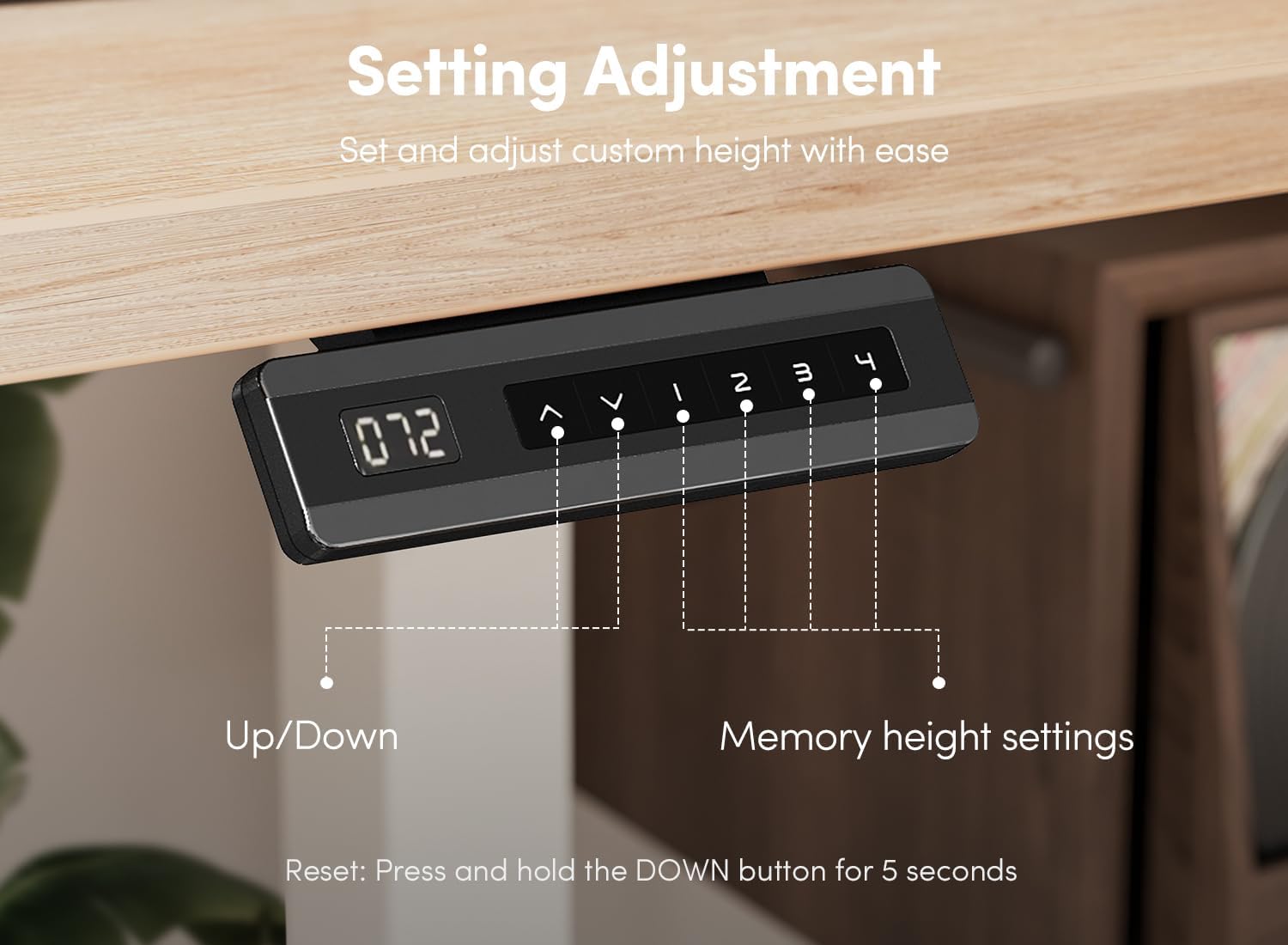 - Convenient Installation & Technical Support: A detailed sit stand desk installation video has been uploaded for reference. The package of the desk contains assembly tools and detailed instructions. (Reset: Press and hold the DOWN button for 5 seconds)