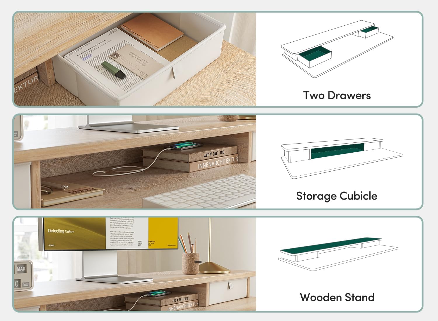 FEZIBO 63 x 28 Inch Deeper Height Adjustable Electric Standing Desk with Double Drawers, Sit Stand Up, Home Office Computer Desk with 4 Height-Adjustable Feets & 2 Hooks, White Frame/Maple Top