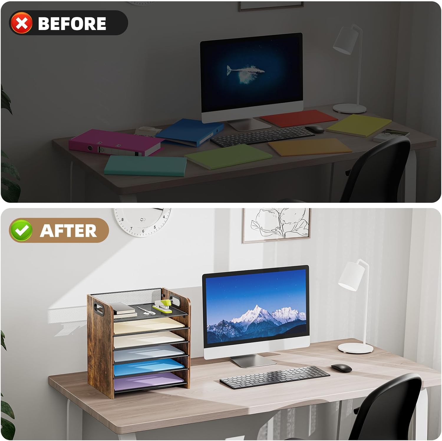 - 【MULTI-PURPOSE ORGANIZER】6-tier layered design and large capacity make the paper organizer become an ideal choice for managing all kinds of letter-size letters, paper, books, bills, etc. Let you quickly identify the contents of each compartment super easy