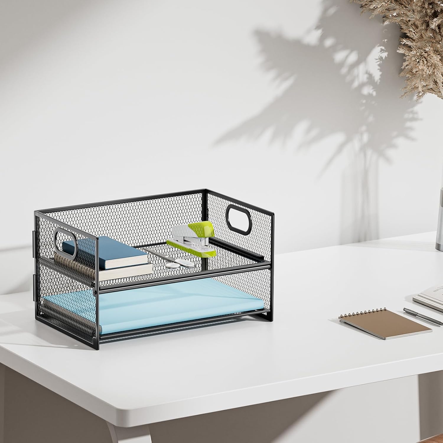 Marbrasse 2 Tier Paper Organizer Letter Tray, Mesh File Organizer with Handle, Paper Sorter Desk Organizer for Home Office Supplies - 2P