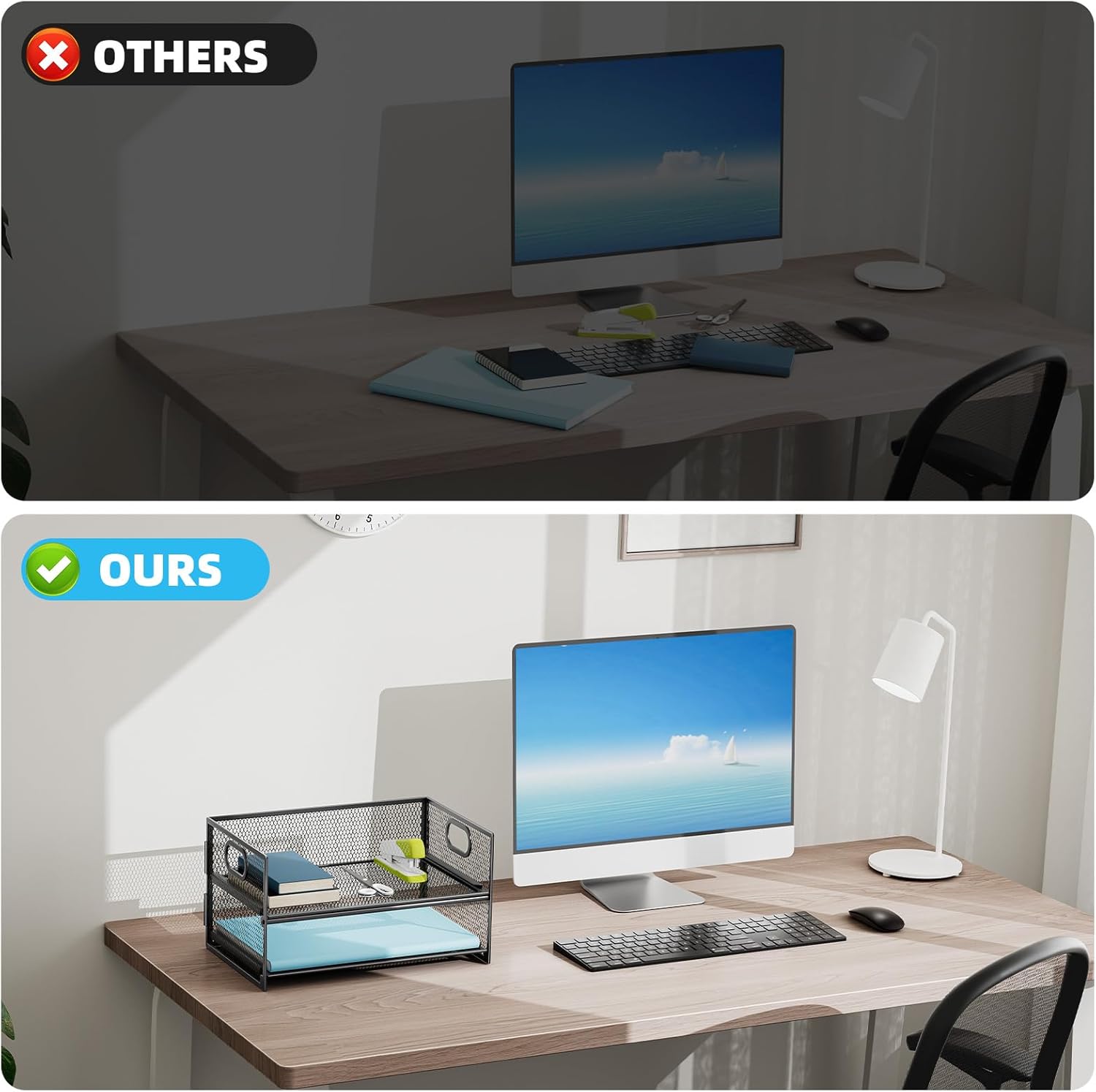 - 【MULTI-PURPOSE ORGANIZER】2-tier layered design and large capacity make the paper organizer become an ideal choice for managing all kinds of letter-size letters, paper, books, bills, etc. Let you quickly identify the contents of each compartment super easy!