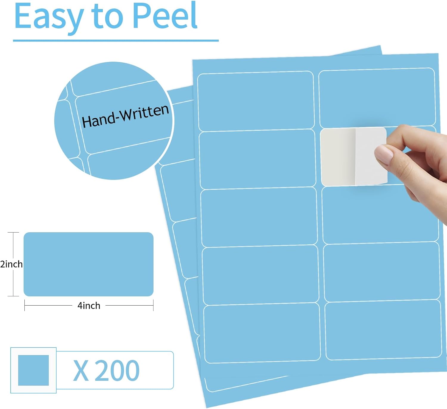- Label Size: Matte Lake Blue-2" x 4", Sheet Size: 8.5" x 11". 20 sheets, Totally 200 labels