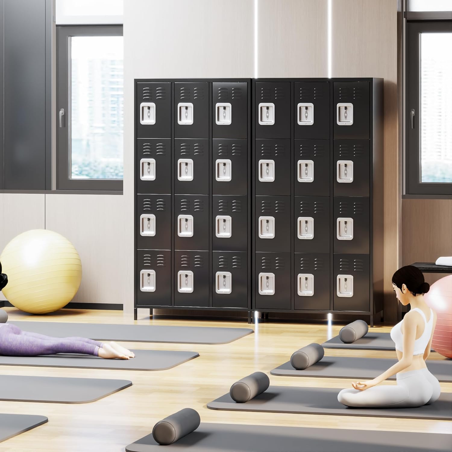 12 Doors Metal Lockers for Employees with Lock, Metal Locker with 12 Hooks for School Garage Office Gym Home,Assembly Required,Black