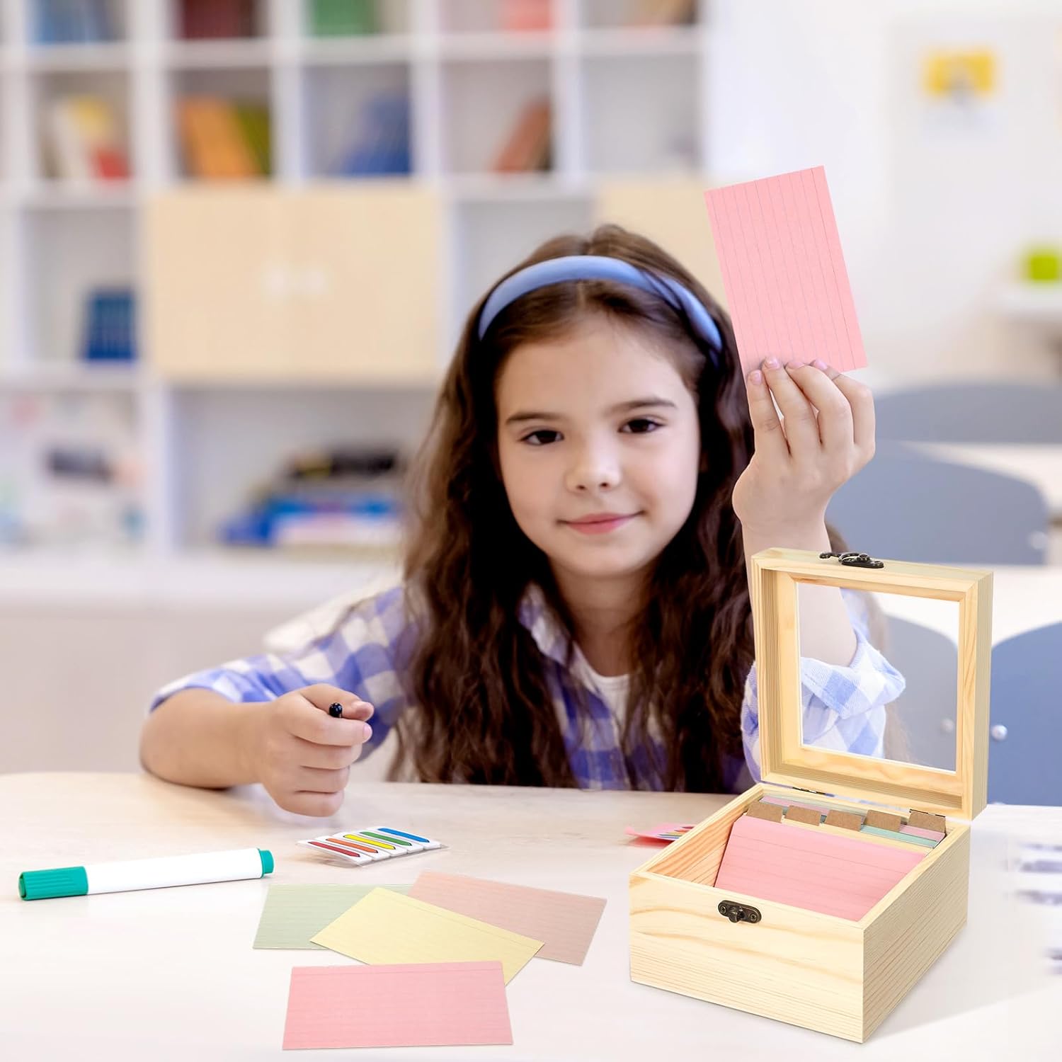 - Complete 3x5 Inch Organization Set: includes 200 index cards (50 sheets in each of 4 colors), 30 kraft paper dividers, and a spacious wooden storage box (5.9"x5.9"x3.9"), everything you need for efficient note taking and categorization