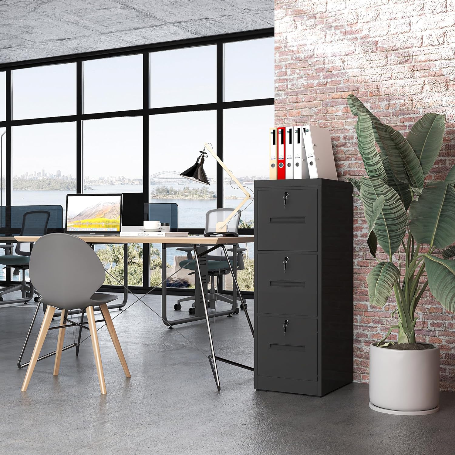 - Locking Cabinet: This 3 drawer filing cabinet prioritizes privacy and security, featuring a dedicated lock for each drawer. You can securely store different types of documents or restrict access to specific drawers as needed—giving you flexible, customizable security to match your organizational needs