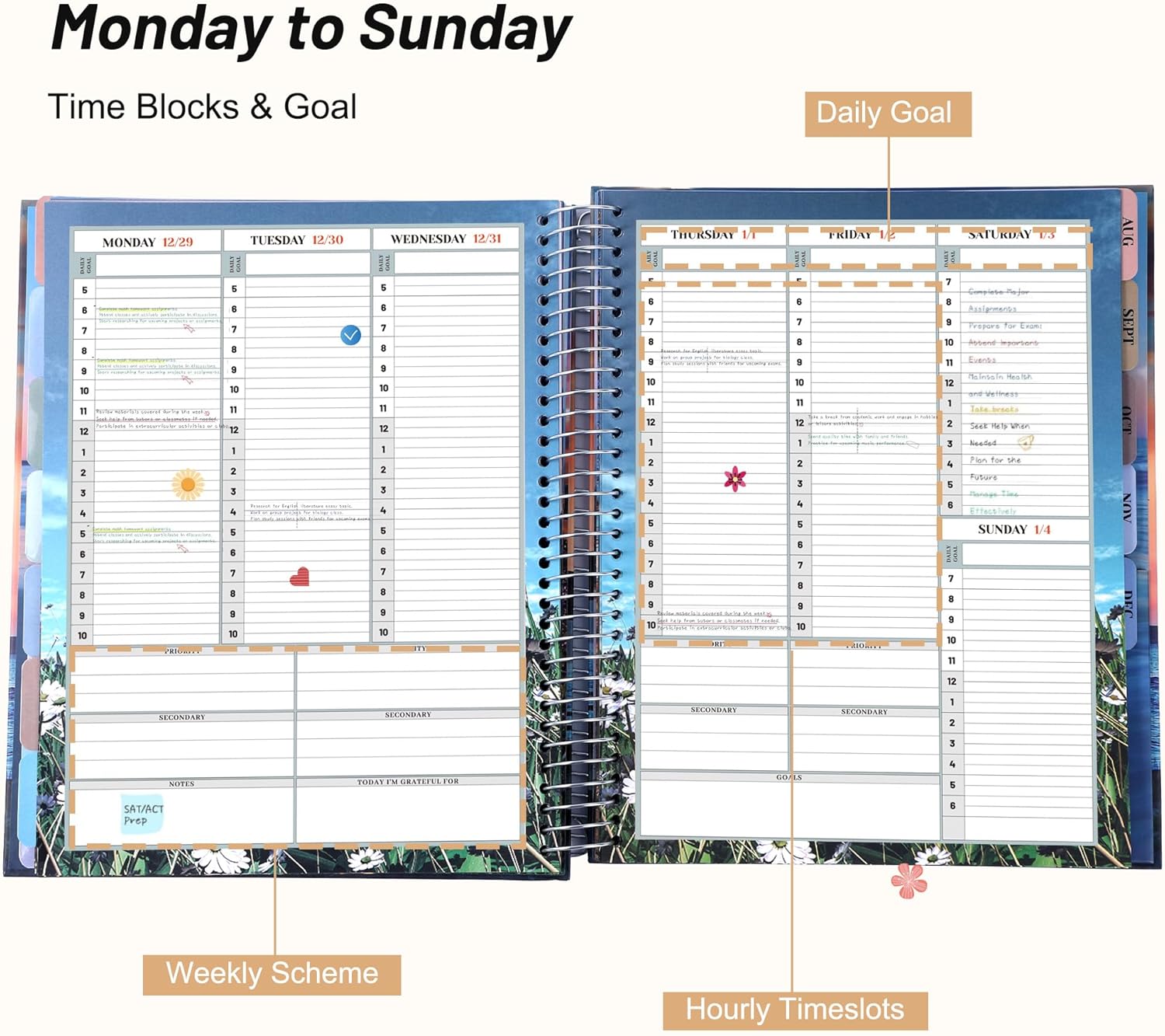 - 2026 ACADEMIC PLANNER: CAGIE large planner maximize productivity with monthly and weekly views designed for meticulous scheduling. Designed with guided prompts to make organizing your affairs straightforward. Visualize progress help your planning from year-long projects to hourly activities, manage own time proficiently, and creating additional leisurely moments for yourself. Providing a fresh start for a school year!