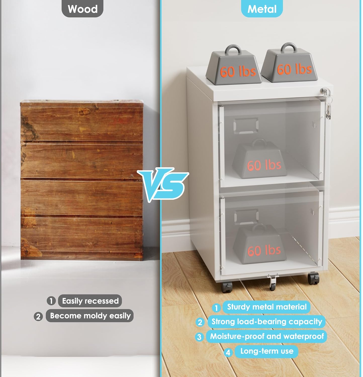 - ăSecurity Assuranceă: This 2 drawer mobile filing cabinet comes with a lock to ensure the safety and security of your important documents and confidential information.