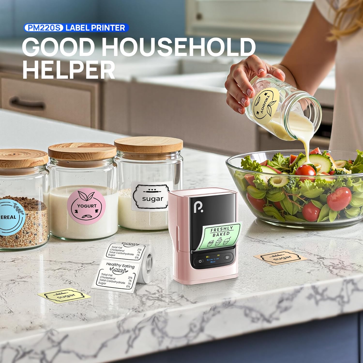 - 【Widely Use】PM220S label maker machine with tape easily connect to your smartphone in just 5 seconds via 4.0 for fast and convenient printing. You can easily print any label you need like price labels, clothing labels, address labels, folder labels, date labels and so on. Ideal label printer for Christmas, Halloween, Thanksgiving, and special events like Mother’s/Father’s Day.