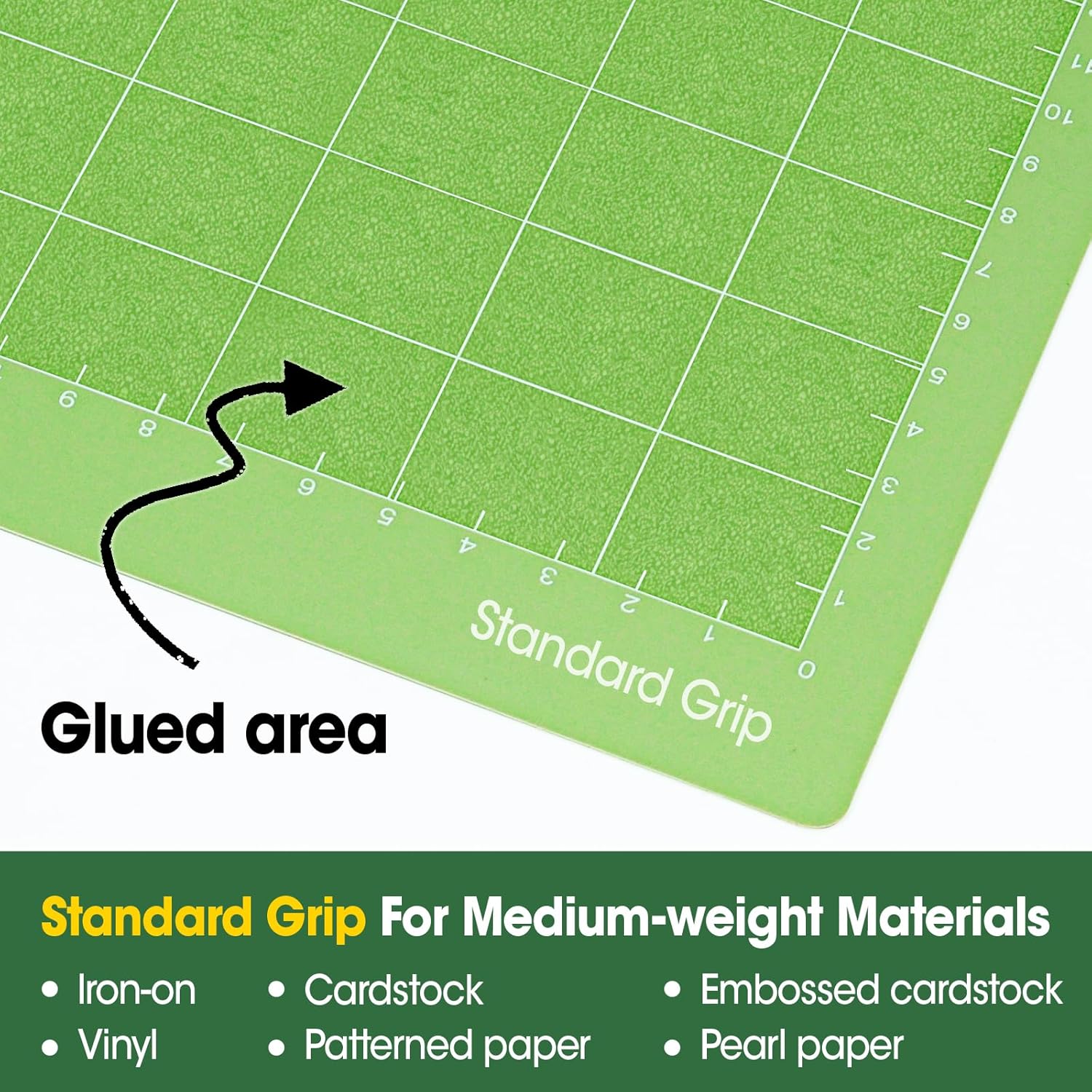 - Medium Viscosity: The green standard cutting pad is very suitable for all kinds of medium weight materials, such as Iron-on, cardstock, printable soldering iron, flash card paper, pearl paper, adhesive paper, printer paper, vinyl, hand paper, wet paper, straw paper, thin fabric, embossed card paper, construction paper, and so on
