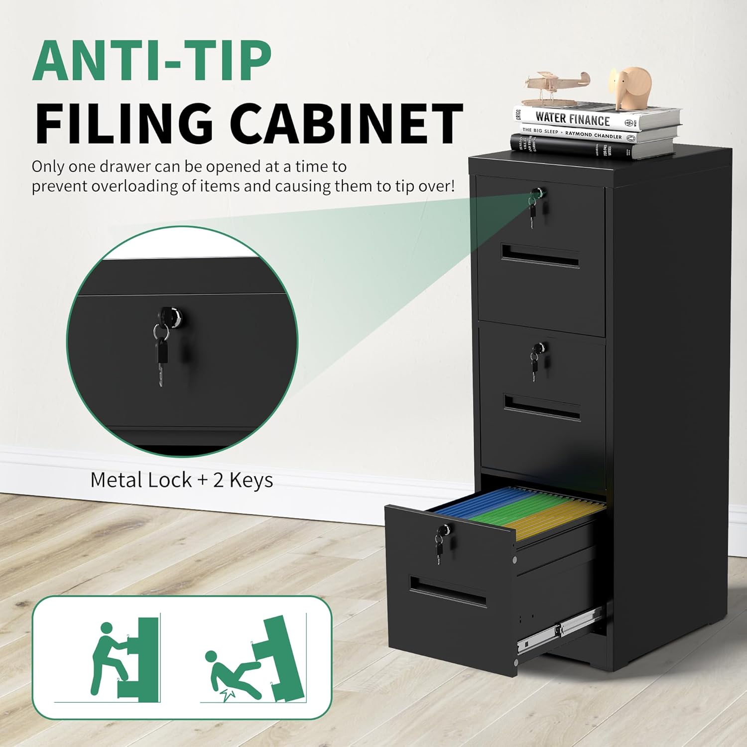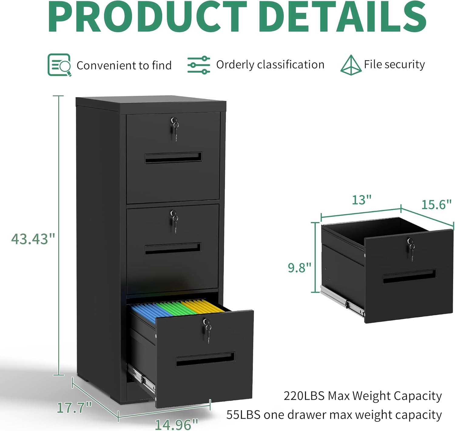 - 【Sturdy Construction】The file cabinet is made of metal material, designed to be durable and suitable for all your storage needs. With a powder coating process that bonds and bakes the protective coating to the bare metal, the vertical file cabinet forms an effective barrier against corrosion.